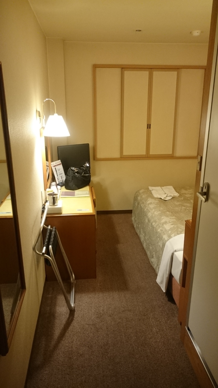 狭くて小さなビジネスホテルですが、一人旅で寝泊まりするだけなら十分でした。