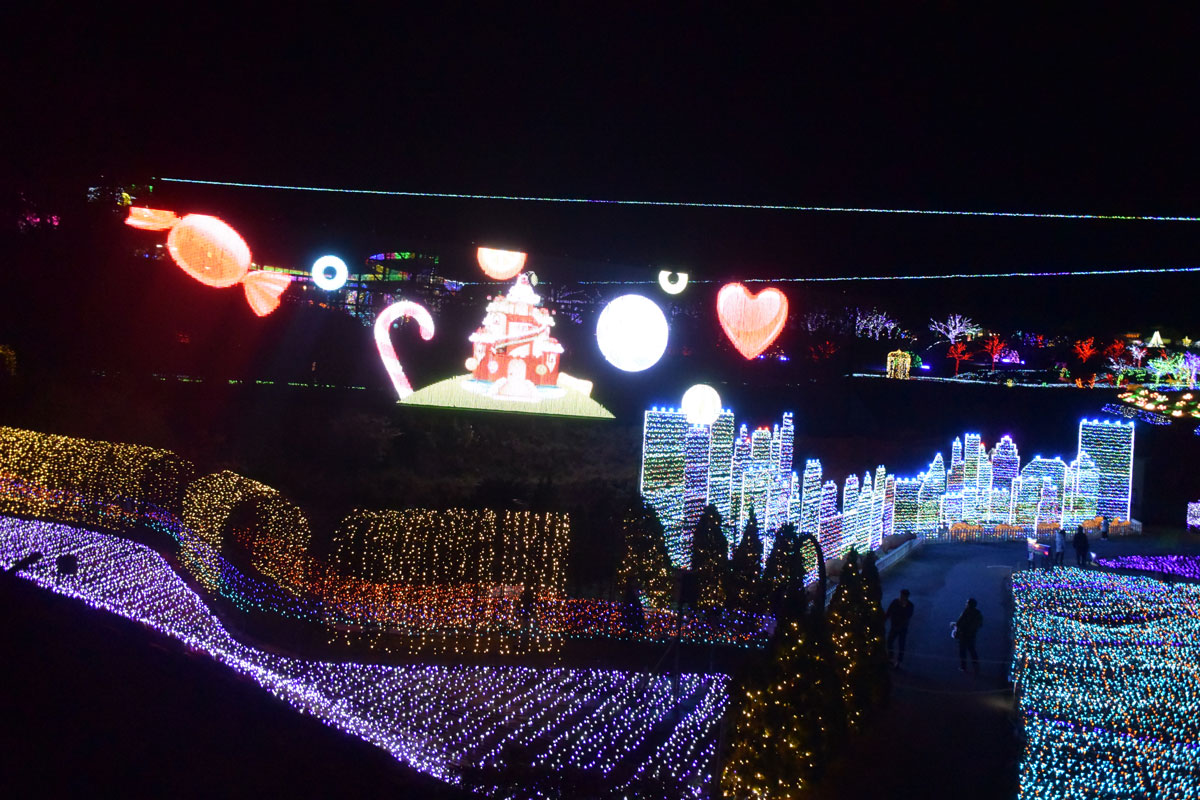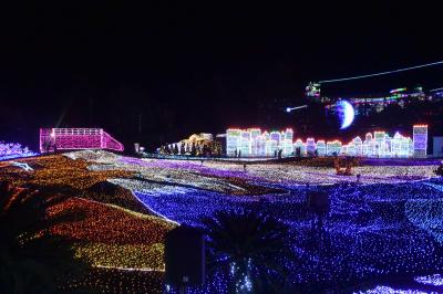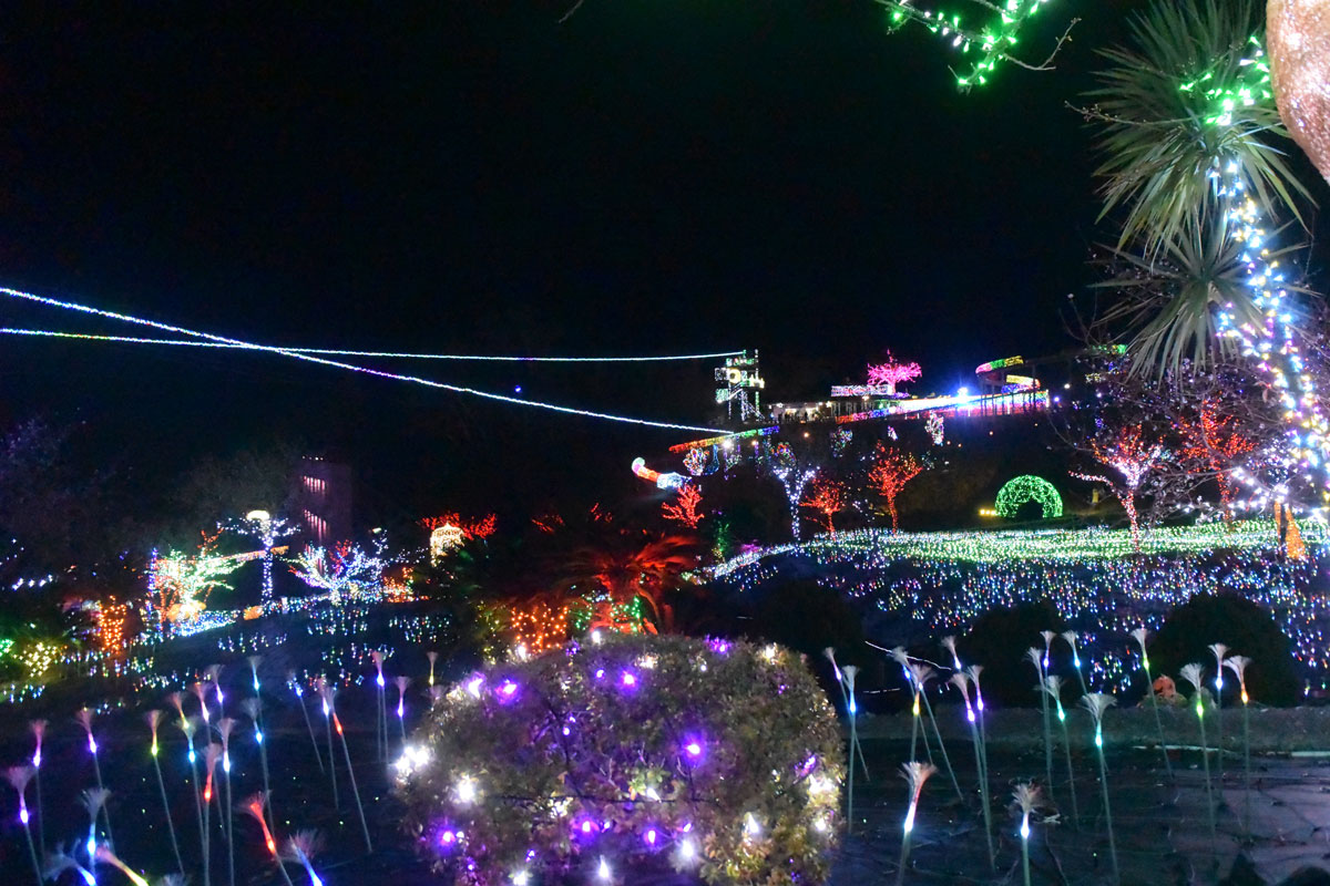 そして“ジップライン~流星RYUSEI~” 往復400mの〝煌めくレール〟でイルミネーションの上を滑空。私は高所恐怖症なので無理ですが、他の施設には無い設備です。- 旅行時期