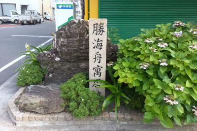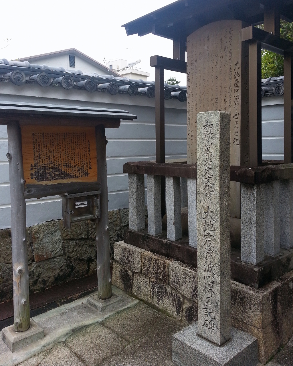 南海和歌山市駅から正面の通りを徒歩5分。通りの角に「勝海舟寓居地」という石碑がゴツゴツした岩と一緒に立っていました。こんなところに勝海舟かと調べてみると,文久3年(1863年)4月,幕府の軍艦奉行であった勝海舟が紀州藩の海岸砲台検分のために和歌山に派遣された際,宿所とした両替商清水平右衛門の屋敷があったところを示す石碑のようです。坂本龍馬も当時訪ねてきたとのこと。ただ,実際の屋敷は橋丁で,こことは違う場所だったらしいです。勝海舟は, このときの検分に基づき,加太浦を軍艦の建造地の候補に挙げて,浦賀奉行に準ずる「加太奉行」を設置すべきと主張したと言われ,この構想により「由良要塞」として加太や友ヶ島に砲台が建設されることになったとのことで,和歌山との関わりを知るきっかけになりました。