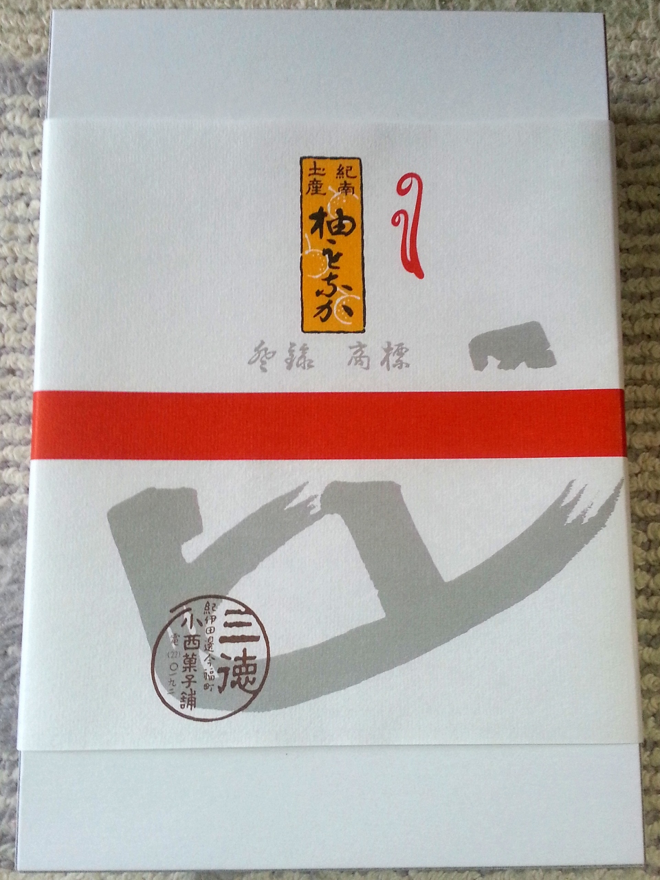 仕事で田辺に出張した際,妻へのおみやげ購入に訪店。田辺・白浜地区の伝統銘菓としていろんなお店から販売されている「柚もなか」の元祖とされるお店です。妻が大好きなお菓子なので,駅から少し歩いて,今福町まで買いに行きました。柚もなかの看板は出ていますが,ひっそりとした店構え。店主らしきおじさんが,引出しのような店台から一つ一つ箱詰めしてくれました。その味は上品そのものです。