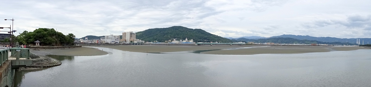 和歌浦周辺を散策した際,市町川の河口のあしべ橋から海を見渡すと,見渡す限りの干潟が広がっていました。和歌の浦観光協会の資料によれば,約35haもあるとのこと。その日は曇天でしたが,不老橋や玉津島神社,鹽竈神社なども近く,天気が良ければ,気持ちの良い散策コースです。潮干狩りをする漁師風の方も見かけました。
