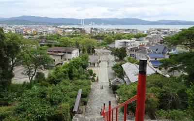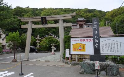 和歌浦周辺を散策したときの観光ポイントの一つ。紀州東照宮の西隣,和歌浦天神山にある。日本三菅廟の一つ。和歌山バス権現前のバス停から,御手洗池公園横を5分ほど入ったところ。参道の左右の脇には,狛犬ではなく,木彫りの神牛が置かれている。神牛を超えると,ゴツゴツした急峻な石段。一段の高さが高いので,急階段が苦手な方には,左手に緩やかな階段もあり。階段上からは,何も遮ることなく和歌浦湾が一望でき,なんとも壮観。重要文化財の楼門や本殿がなかなか見事。