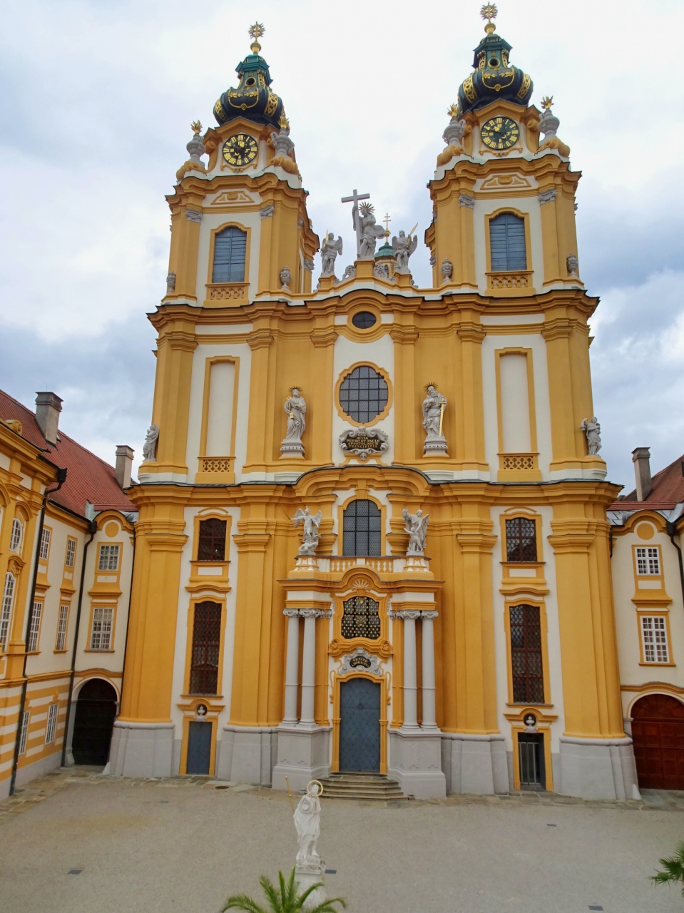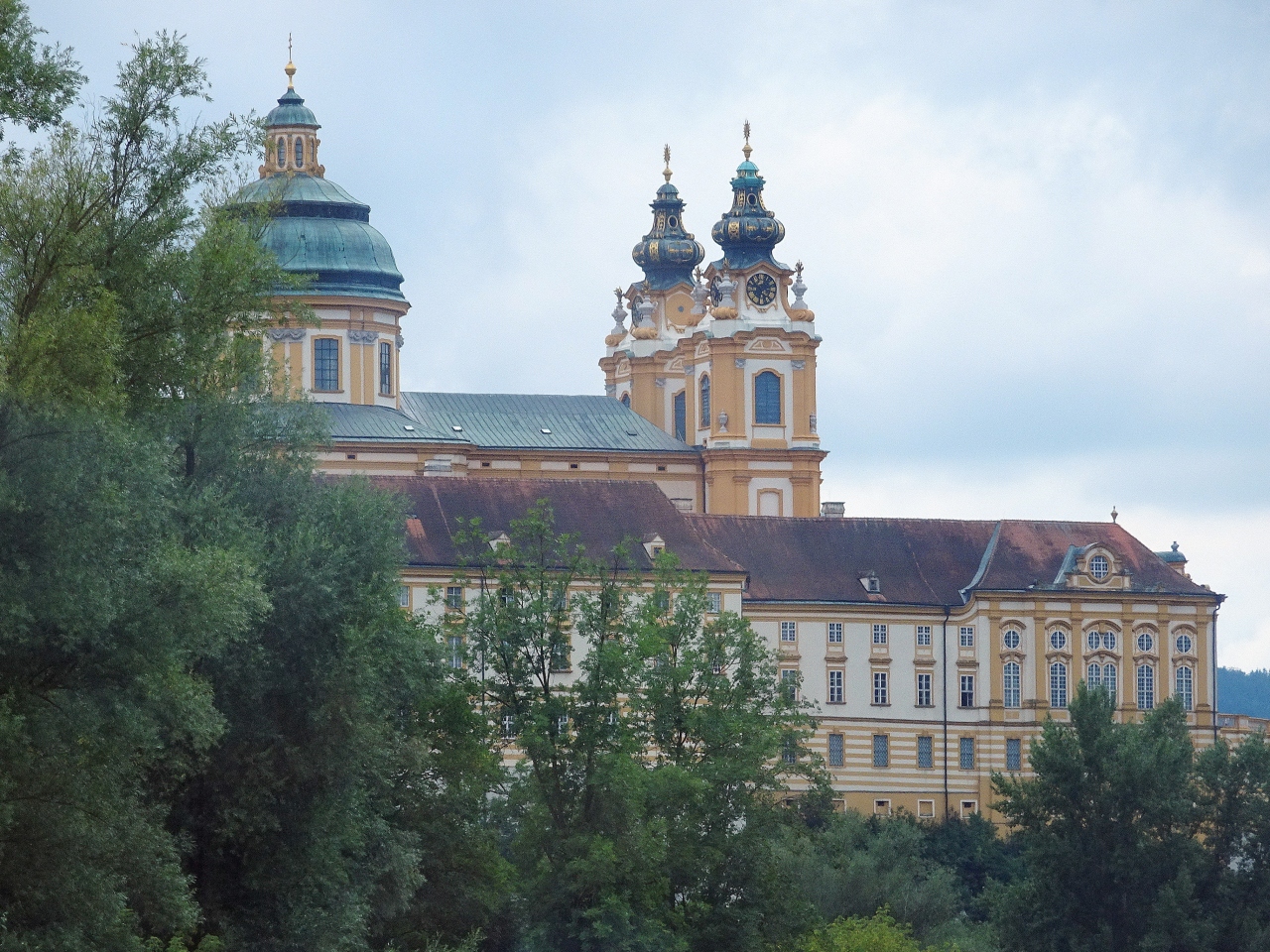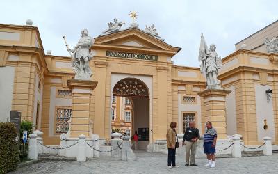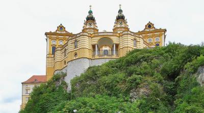 ヴァッハウ渓谷を巡るツアーで訪問。メルク駅から修道院へ向かう途中から「横に伸びた摩天楼」と言われる外観が目に飛び込んできます。内部は写真撮影不可ですが,大理石の間や聖堂などバロック様式特有の壮麗な装飾が素晴らしく,また,ウンベルト・エーコが小説『薔薇の名前』の主人公の一人に「アドソ・フォン・メルク」と名付け,賛辞を送った図書館も,見どころの一つです。ドナウ川を一望できるテラスでは,その眺望や2つの尖塔を有するファサードをたっぷり写真撮影。