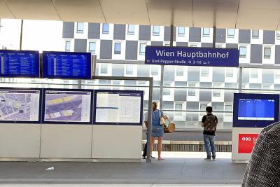 ミュンヘンから列車でウィーンに入った際,この駅に到着しました。市中心部のリンクへは,地下鉄やトラムと複数のルートがあります。駅のメインのエリアは西側ですが,私達は利用ホテルの最寄りがトラムD線で,たまたま列車の前の方(東)に乗っていたこともあり,降りたところから近かった東出口の方へ。東出口を出た目の前がD線の停留所でした。さてトラムの切符を買おうと券売機を探すも停留所近くにはなく(トラムは市中心部の停留所でも券売機がないところが多いので注意です。),東ロに戻り辺りを探索。OBBの券売機は違うだろうと思いながら,念のため画面をタッチしたところ,「Wien」のボタンがありました。無事乗車券をゲットして停留所に。