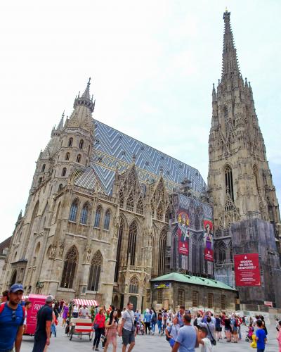 カールスプラッツから地下鉄U1線で。ウィーンのシンボル,シュテファン大聖堂があり,多くの観光客が集まる広場。観光馬車フェルナーの乗り場になっており,また,コンサートチケットを立ち売りする人も多い。ちょっと古い話になりますが,お笑いタレントの稲垣早希さんの「ヨーロッパ横断ブログ旅」(その当時お気に入りの番組だった「ロケみつ」の旅企画)の出発地点だとして訪れたのが6年前の夏。既に大聖堂の修復も進行中でしたが,当時はまだ南側面など砂岩が酸化して黒くすすけたところも多かったですが,今回久しぶりに見た大聖堂は,本来の白さがだいぶ戻った姿になっていました。