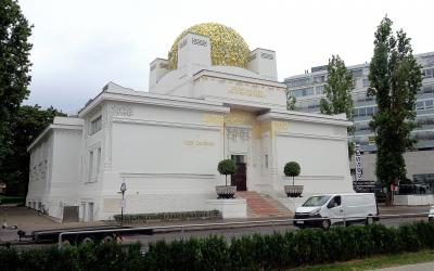 1897年にクリムトら分離派の活動拠点としてヨゼフ・マリア・オルブレヒの設計で建設。「金のキャベツ」と称される月桂樹の葉をモチーフにしたドームが特徴で,アンデア劇場を訪問したついでに外観だけ写真に収めてきました。前の歩道がそれほど広くないので,ドームの形を綺麗に写真に納めるには,通りを渡ったところから撮るのがいいと思います。