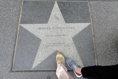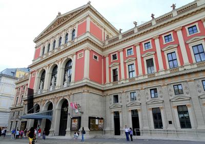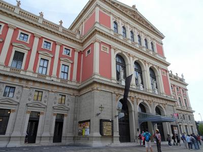 ウィーンで宿泊したホテル,アム・コンツェルトハウスから目と鼻の先。ウィーン交響楽団の本拠地で,1913年に完成した白亜の殿堂。中央の正面玄関の左右壁面に,「Ehrt eure deutschen meister」と「Dann bannt ihr gute geister」の文字が掲げられています。調べてみると,それは,ワーグナーのオペラ「ニュルンベルクのマイスタージンガー」の第4幕最後の場面の一節で,「ドイツの名匠たちを讃えるのです。そうすれば善なる精神を心にとどめられるのですから」という意味でした。最後に「神聖ローマ帝国が滅びても,ドイツの芸術は決して滅びません。聖なるドイツの芸術は」で結ばれる部分です。また,正面玄関の足元には,1913年10月19日のオープニングコンサートの記念の星型のプレートがありました。リヒャルト・シュトラウスが自身作曲の「祝典前奏曲」を初演して,こけら落としを行ったようです。