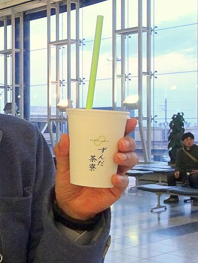 テレビ番組でマツコ・デラックスが絶賛したことから一気に有名になった「ずんだシェイク」。ゴールデンウイークの10連休に参加した「みちのく三大桜名所」を巡る観光バスツアーで,仙台空港から帰阪する際に,現地の添乗員さんから薦められたので,試しに飲んでみました。なかなか濃厚で,最初吸い上げてもストローからなかなか上がってきません。味は,バニラを基調としているので,飲みやすいものでしたが,絶賛するほどかなという感じでした。