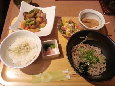 ヨドバシカメラ梅田店の8階レストラン街のお店。同階のレストランの中では地味目な外観等もあって,お客が集中することはなく,待たずに入店。和定食系のメニューも揃っており,今回注文した鶏肉と国産ケールの黒酢炒めの定食も,メインに御飯とミニのそば又はうどん(温又は冷が選べる),ミニサラダ,香の物,わらび餅のデザートが付いて,1080円とリーズナブルです。味も悪くありませんでした。