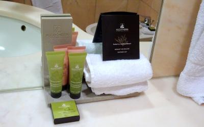 館内は,スタイリッシュで,かつ歴史を感じさせる絵画や写真が飾られていました。室内は,清潔で,標準的な広さ。洗面所にテッシュペーパーの備付けもありました。アメニティはアルゴテルムのものが用意。快適に過ごすことができましたが,難点だったのが,部屋の入ロ扉のオートロックです。一般なカードをかざすタイプの電子錠でしたが,ロックが外れてからもノブの部分がうまく回らず再びロックがかかってしまい,滞在中苦労しました。また,浴室の水とお湯の量を調整する部分が手元になく,最初お湯しか出ず,湯船に入るのをあきらめなければならないと思ったところ,なんとシャワーを引っかける部分の上,背の低い人では届かないようなところに付いていて,びっくりしました。- 旅行時期