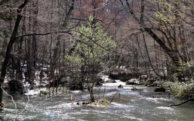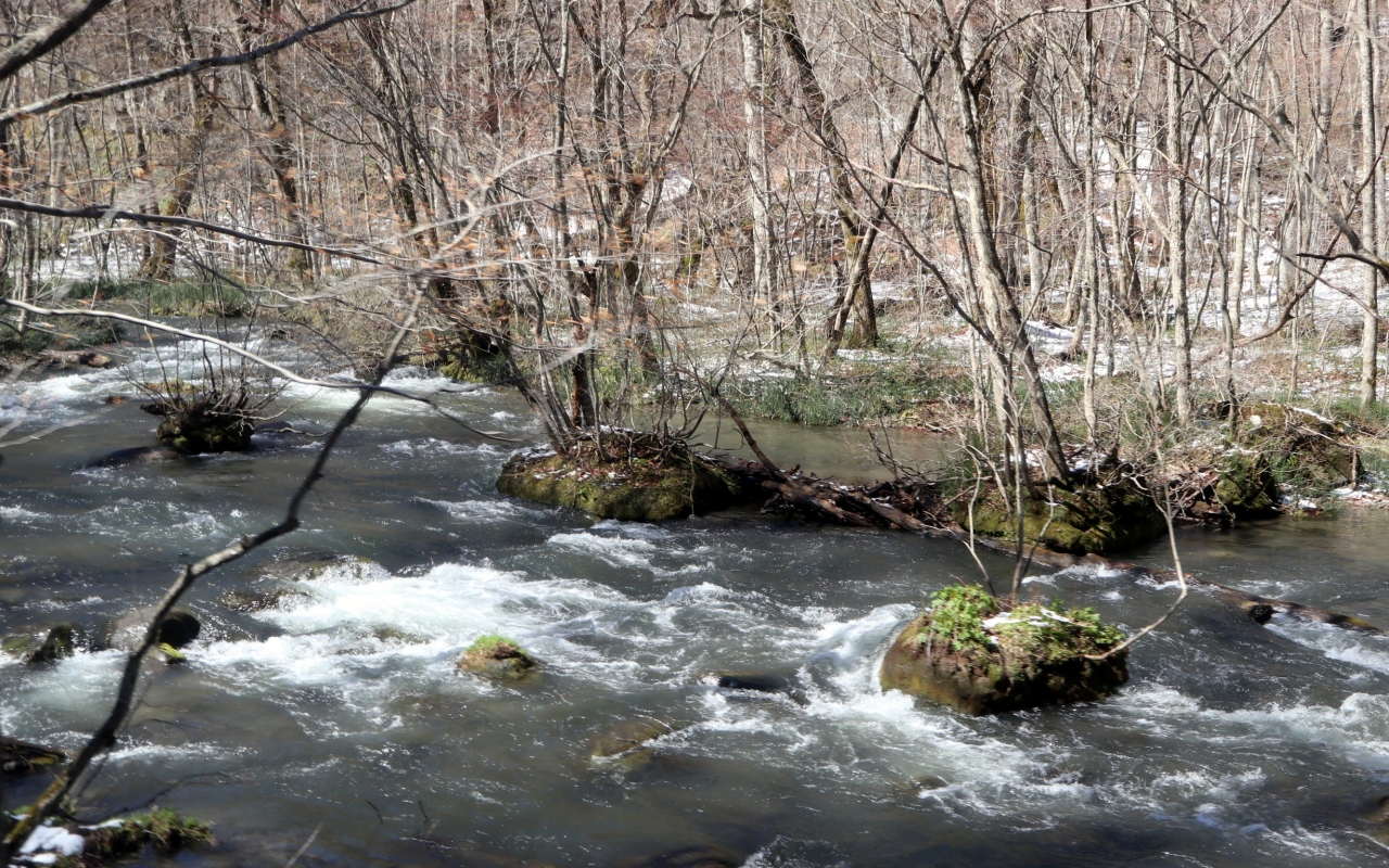 ゴールデンウイークの10連休に,「みちのく三大桜名所」を巡る観光バスツアーで,十和田湖から八甲田までの途中,バスから車窓観光しました。新緑の景色を期待していたのですが,まだまだ茶色の世界でした。前日までの寒波による降雪もあり,茶色に白雪という冬の装い。ガイドブックに紹介されているような緑の景観を楽しめるのは夏場に来る必要があります。バスガイドさんが滝などの見どころを丁寧に説明してくれたので,車窓からだけでも結構楽しめました。