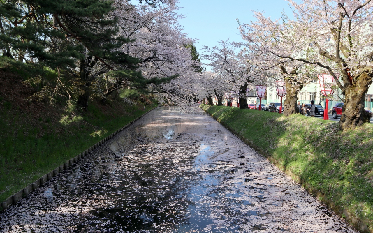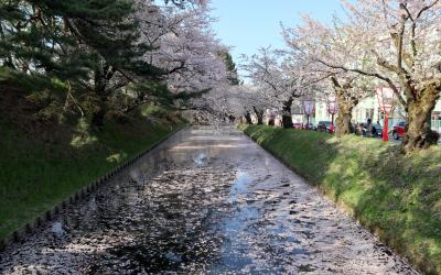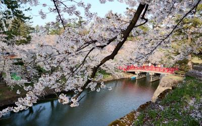 ゴールデンウイークの10連休に,「みちのく三大桜名所」を巡る観光バスツアーで訪問。「さくら名所100選」に選ばれ,例年この期間200万人を超える来場者があるということで,今回の訪問時も桜を見るために訪れた観光客の車で,公園に至る道路が大渋滞。一向に進まないので,手前でバスを降りて歩いて向かいました。まず,外堀で,散り初めた桜が水面に浮かぶ「花いかだ」,びっしり敷き詰められたという感じではありませんが,それはそれでいい感じ。城内に入ると,まるで初詣のような混み様でしたが,満開のソメイヨシノやしだれ桜が目を楽しませてくれました。