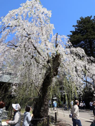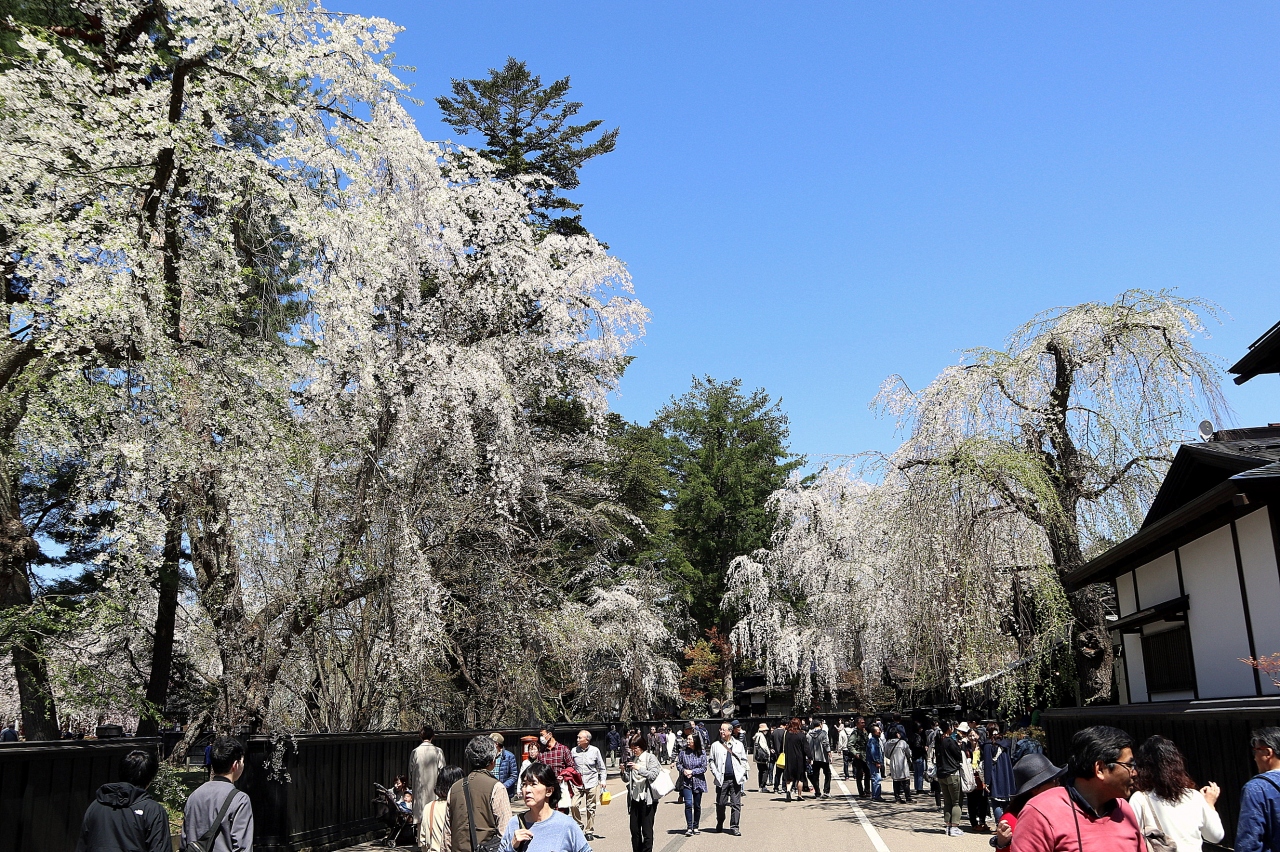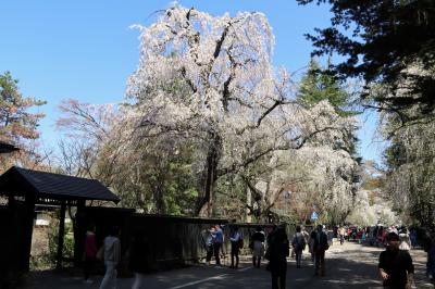 「みちのくの小京都」と呼ばれる角館は,「さくら名所100選」に選定されており,「みちのく三大桜名所」にも指定されている東北屈指の桜の名所です。ゴールデンウイークの10連休に,「みちのく三大桜名所」を巡る観光バスツアーで訪問しました。武家屋敷通りでは,黒い板塀とピンクや白,灰色のしだれ桜がコントラストある景観を作り出し,とても美しい。国の天然記念物にも指定された大木も多く,好天に恵まれたので,青空に映える桜も綺麗です。しだれ桜は,ソメイヨシノに比べて,花びらが小さいためか,優しく透けた感じがいいですね。