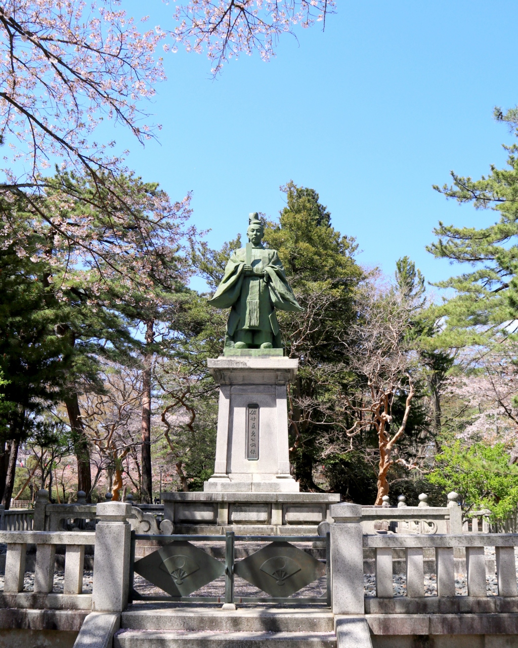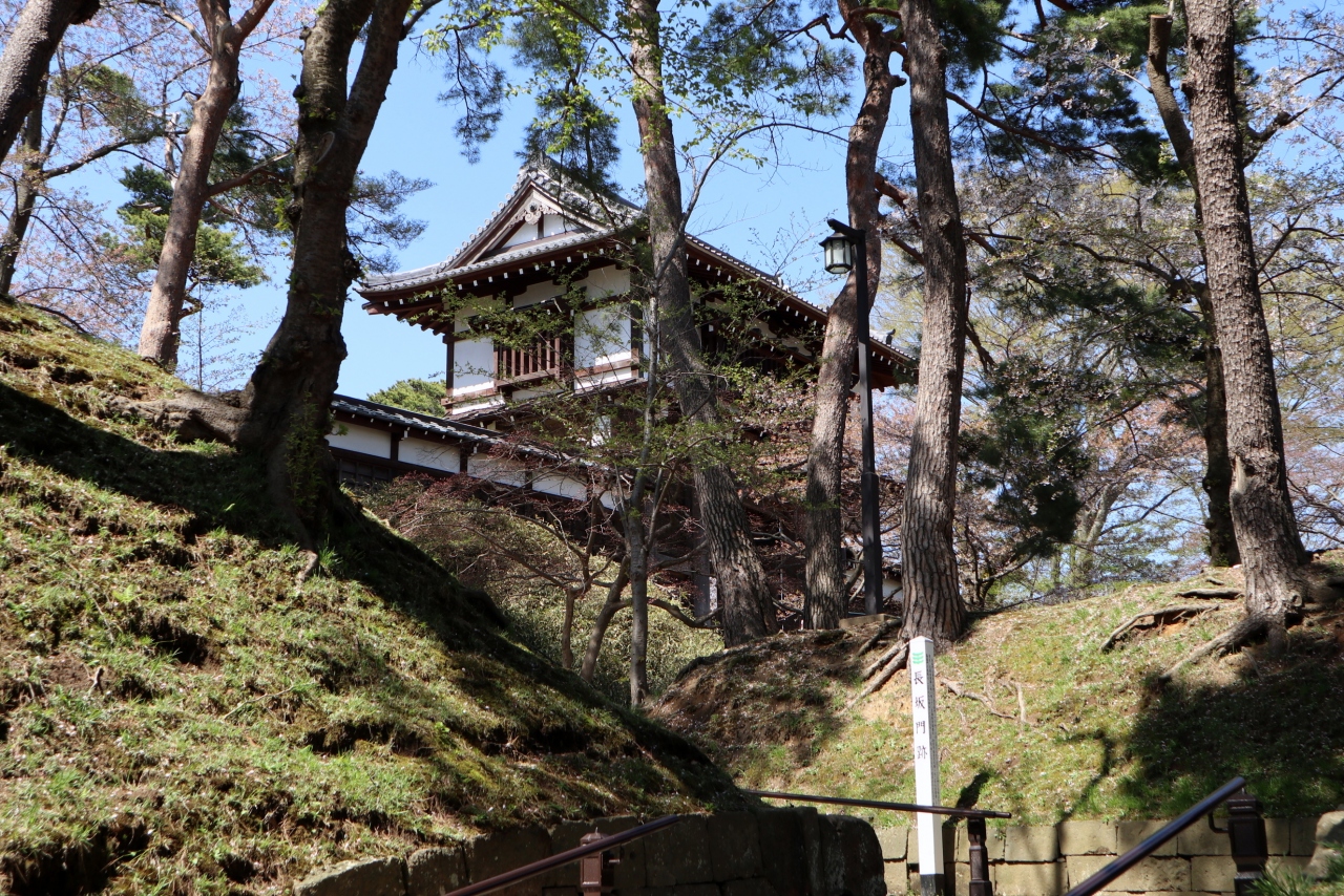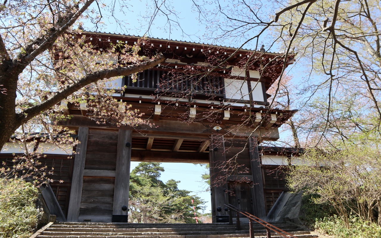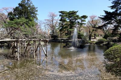 久保田城は,佐竹氏の居城として,標高約40mの神明山の丘陵に,慶長8年(1603年)に築かれた平城で,明治13年(1880年)の火災により御物頭御番所を残して大部分の建物は焼失。城跡が千秋公園として整備されている。本丸北西隅に,市政100周年を記念して1989年に「御隅櫓」が,2001年に本丸表門が,それぞれ復元され,2006年に「日本100名城」に選定されている。訪問時は,桜が散り初めではありましたが,青空を背景に白壁の御隅櫓と桜のピンクがよく映えていました。