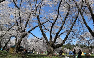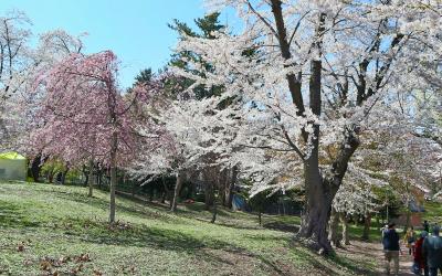 ゴールデンウイークの10連休に,「みちのく三大桜名所」を巡る観光バスツアーで訪問。ツアーの初日に訪れた北上展勝地と盛岡城跡公園がいずれも葉桜状態だったので,この公園で初めて満開のソメイヨシノに出会い,好天にも恵まれ,桜らしい桜に感激。花見客が大勢訪れており,私たちもツアー配給のお弁当でしたが,花見をしながら美味しくいただきました。昼食後,芦野湖周辺など園内を散策しました,「さくらの名所100選」に選ばれているだけあって,ソメイヨシノのほか,しだれや八重,白やピンクの桜が咲き誇り,青空に映えて,目を和ませてくれました。