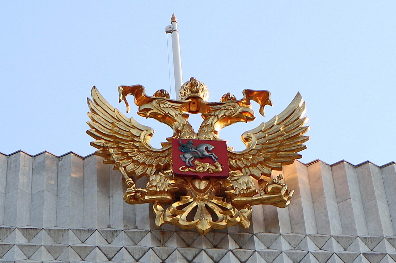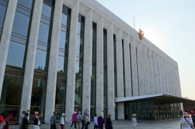 1961年完成の旧クレムリン大会宮殿で,ソ連共産党大会の会場として使われた場所。トロイツカヤ塔を入ってすぐの場所。立柱とガラス張りの重厚な正面ファザードの上部に光り輝いている黄金の双頭の鷲のエンブレムが特徴的です。