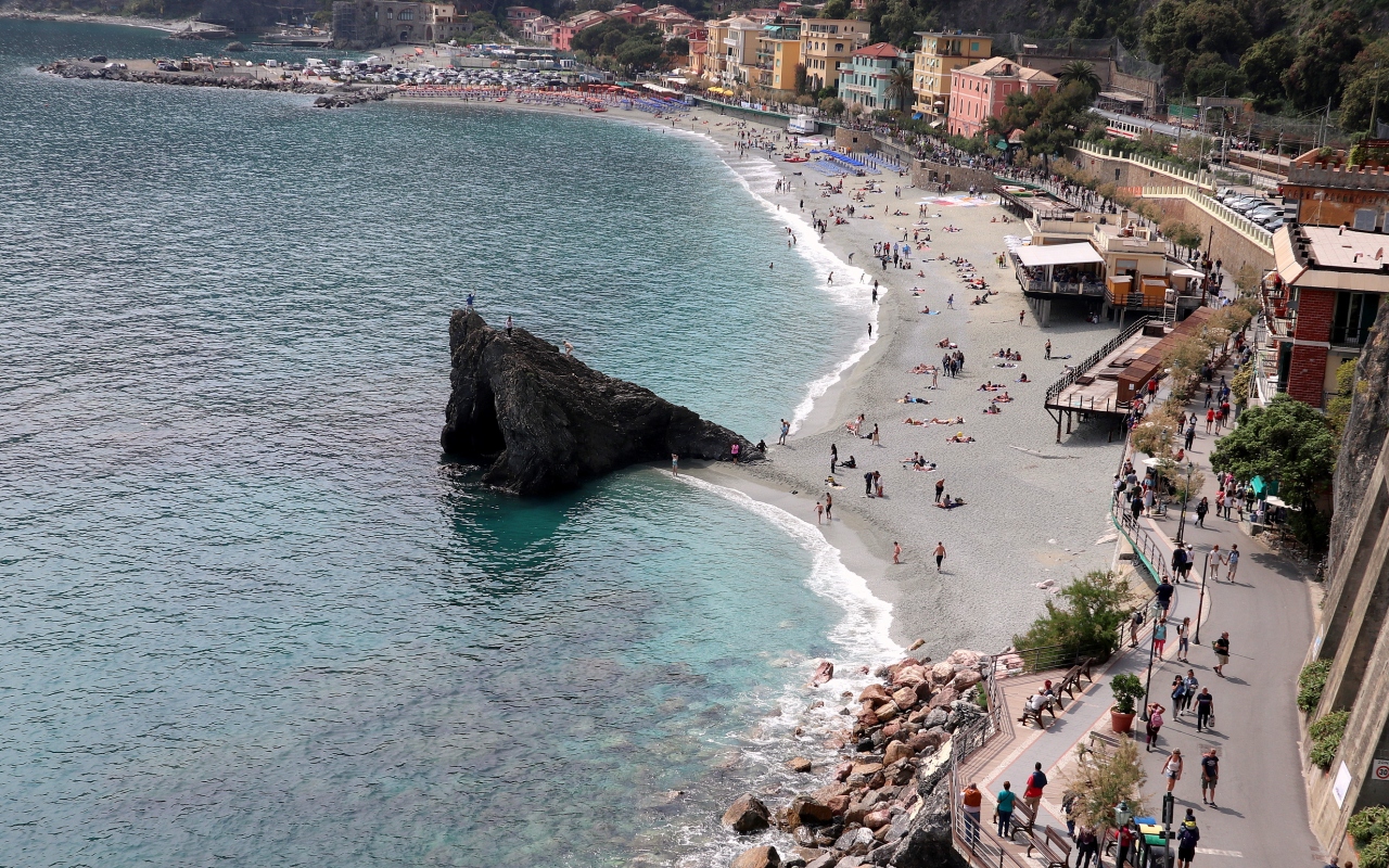 My Tour Tuscany Experts催行のチンクエ・テッレ終日観光ツアーで訪問し,ランチを含め3時間滞在しました。土地が赤かったことから「Monterosso(赤い山)」という名前が付いたと言われるこの町は,チンクエ・テッレの中で一番西に位置し,チンクエ・テッレの中で唯一砂浜のビーチがあり,海水浴も楽しめるリゾート地です。アウローラの塔のある岩山を境に,旧市街と新市街に分かれ,旧市街には,サン・ジョヴァンニ・バッティスタ教会や死と祈りの礼拝堂などの観光スポットが集中し,新市街はフェジーナビーチを中心にリゾートホテルなどが多く設置されています。つづら折りの遊歩道を上って,岩山の展望台から見た海の景色が最高でした。