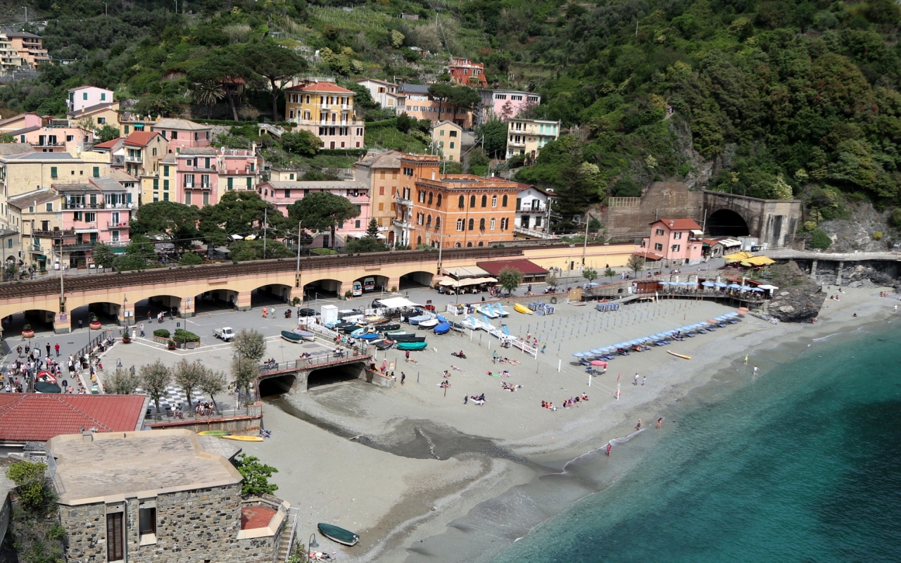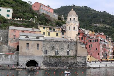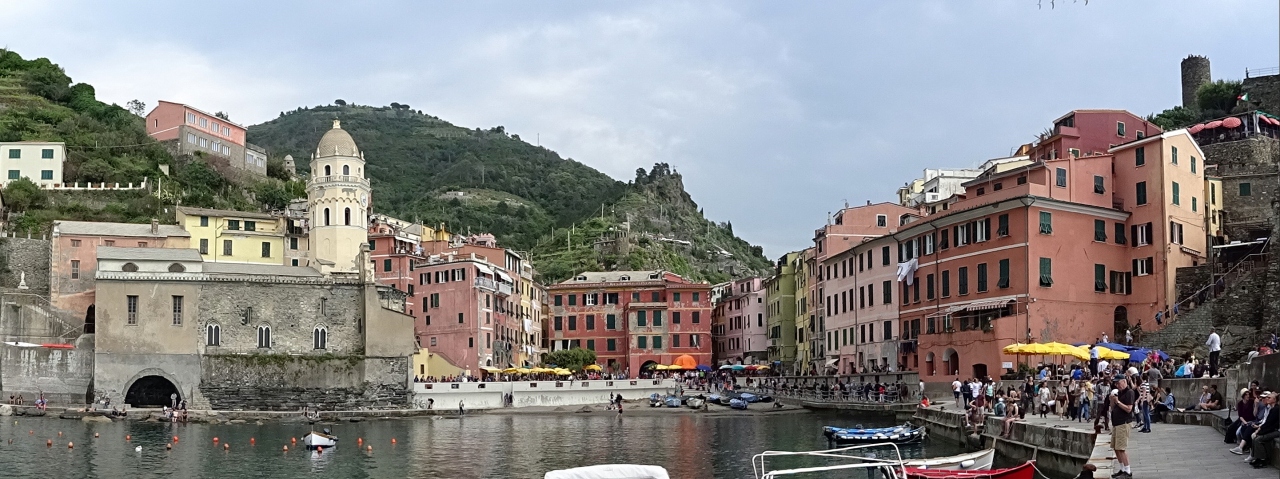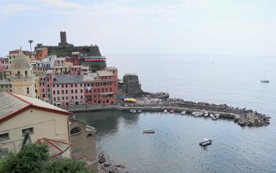 My Tour Tuscany Experts催行のチンクエ・テッレ終日観光ツアーで訪問し,35分程観光。チンクエ・テッレの西から2番目の町で,モンテロッソ・アル・マーレから電車で約5分。駅前にその時の状況が写真パネルで掲示されていますが,2011年10月25日に記録的大雨による土石流により海岸まで土砂に埋め尽くされるという被害があったようです。今は,駅から港まで伸びるメインストリートにおみやげ店やカフェが並び,元通りの賑わいを取り戻しています。湾の前の広場奥の階段を上って,サンタ・マルゲリータ・ディ・アンティオティア教会の裏の坂道を上っていくと,湾全体が見渡せるようになり,岩山の上には円筒形のドーリア城も見えます。私は,あまり時間がなく,足も重かったので,断念しましたが,途中の料金所で7.9ユーロを払う必要はあるものの,遊歩道を更に上がったベストショットポイントから,湾を囲んで,教会の塔,カラフルな家並み,その向こうにドーリア城という景色を見下ろした写真を撮ることができます。ドーリア城の塔にも登りたかったのですが,時間がありませんでした。両方行くには少なくとも1時間は欲しいところ。