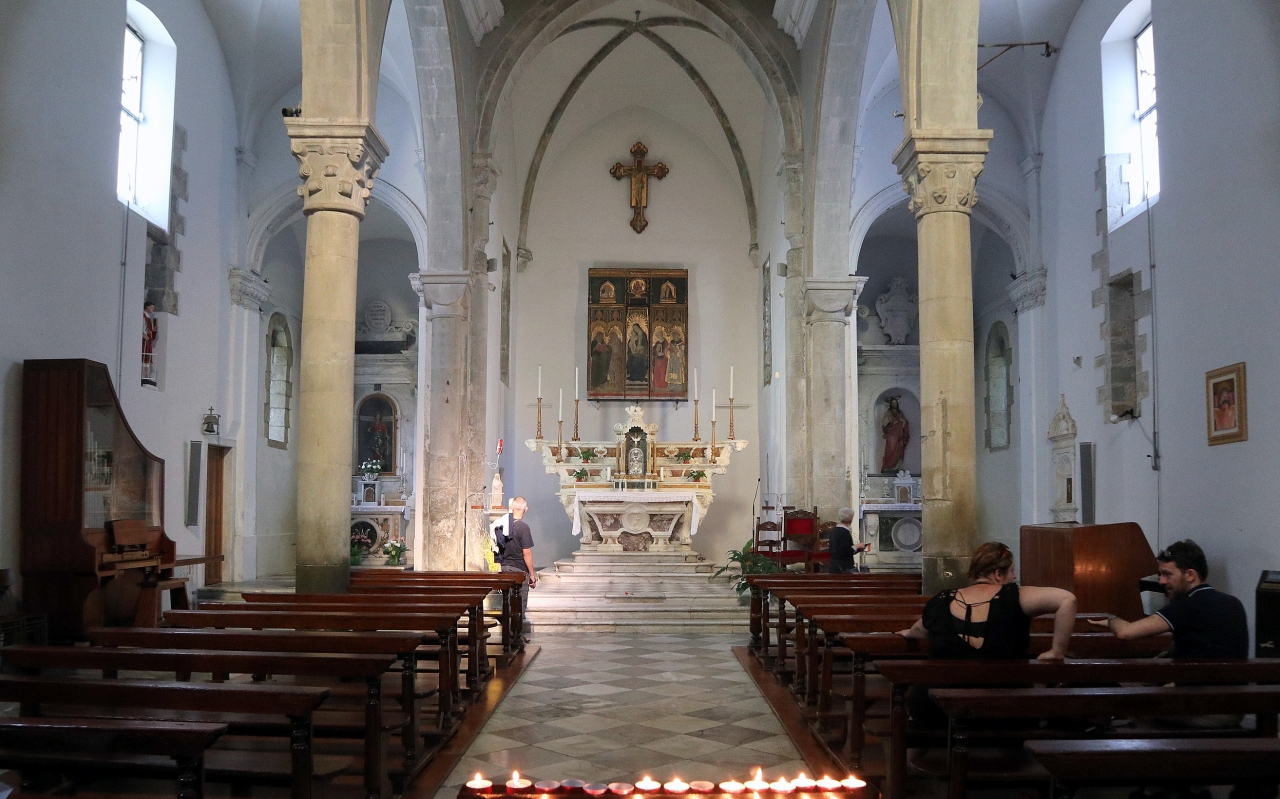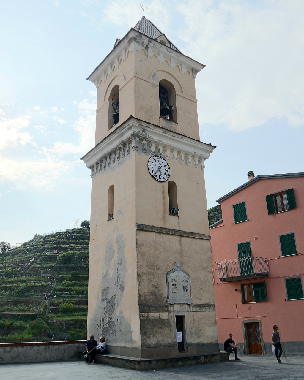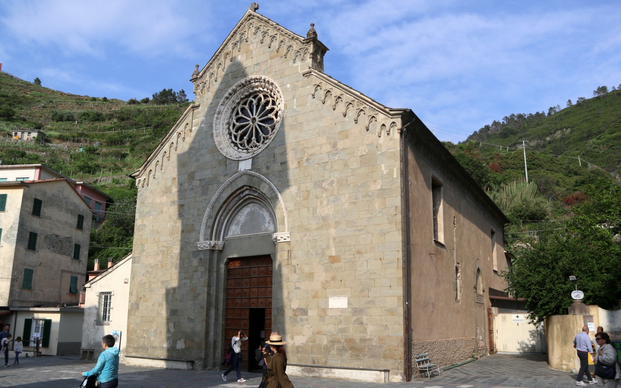 ヴェルナッツァの湾の西側に,湾に面して立つこの街のシンボル。内部の身廊は,非常にシンプルな構造で,天井は船底状の板張りで,壁がむき出しの素朴な石積みになっており,主祭壇には彫像や宗教画もありませんでした。