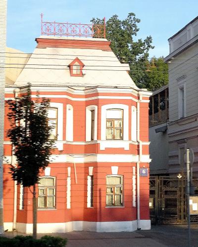 ツアーで,空港からモスクワ市内のホテルへの途上,環状線を通ったときに見かけました。ビルとビルの間に挟まれるように建つ,赤と白の2階建ての可愛い建物。ガイドさんからチェーホフの家と案内され,カメラを向けました。残念ながら,入館する機会はなく,外観だけ。