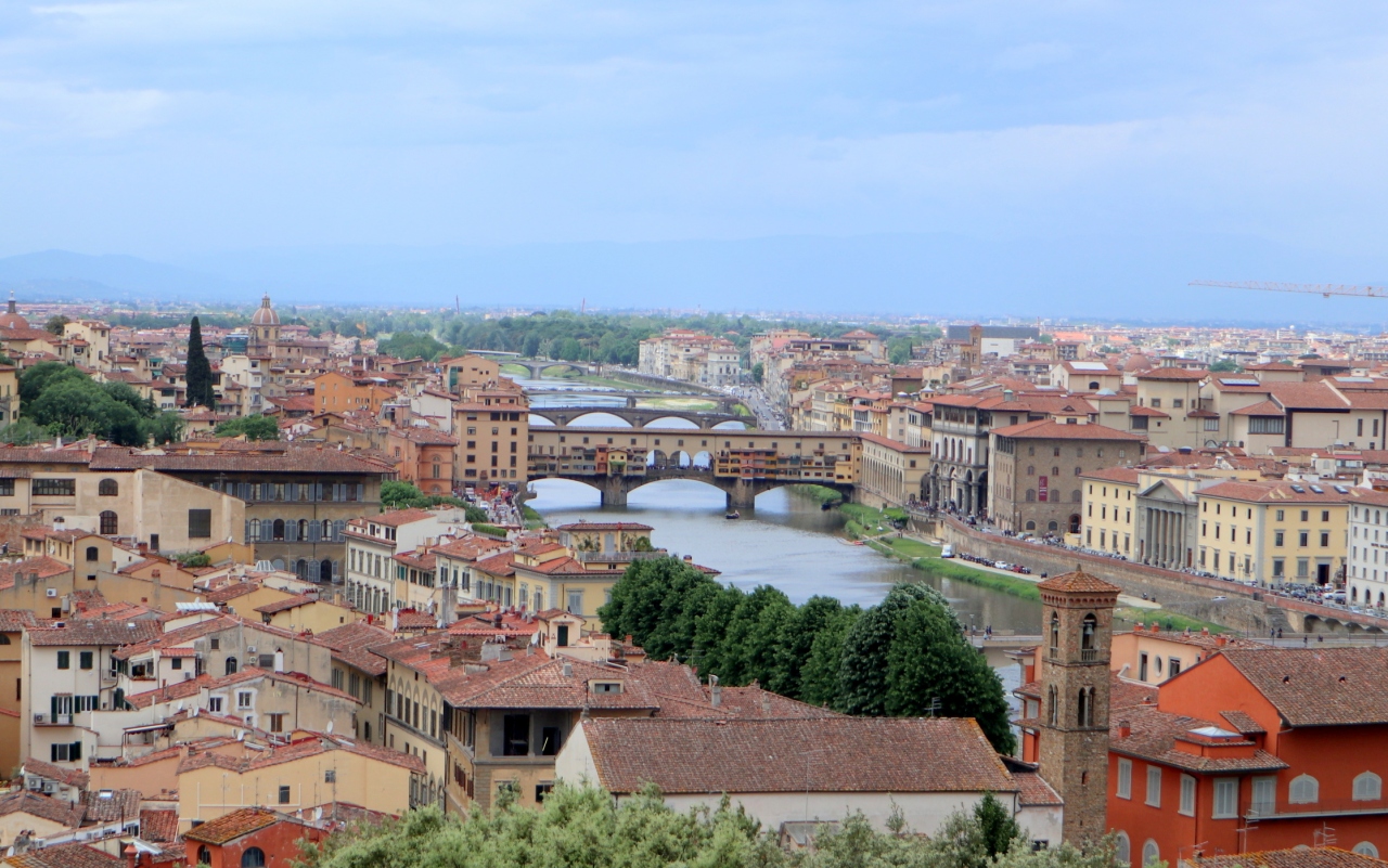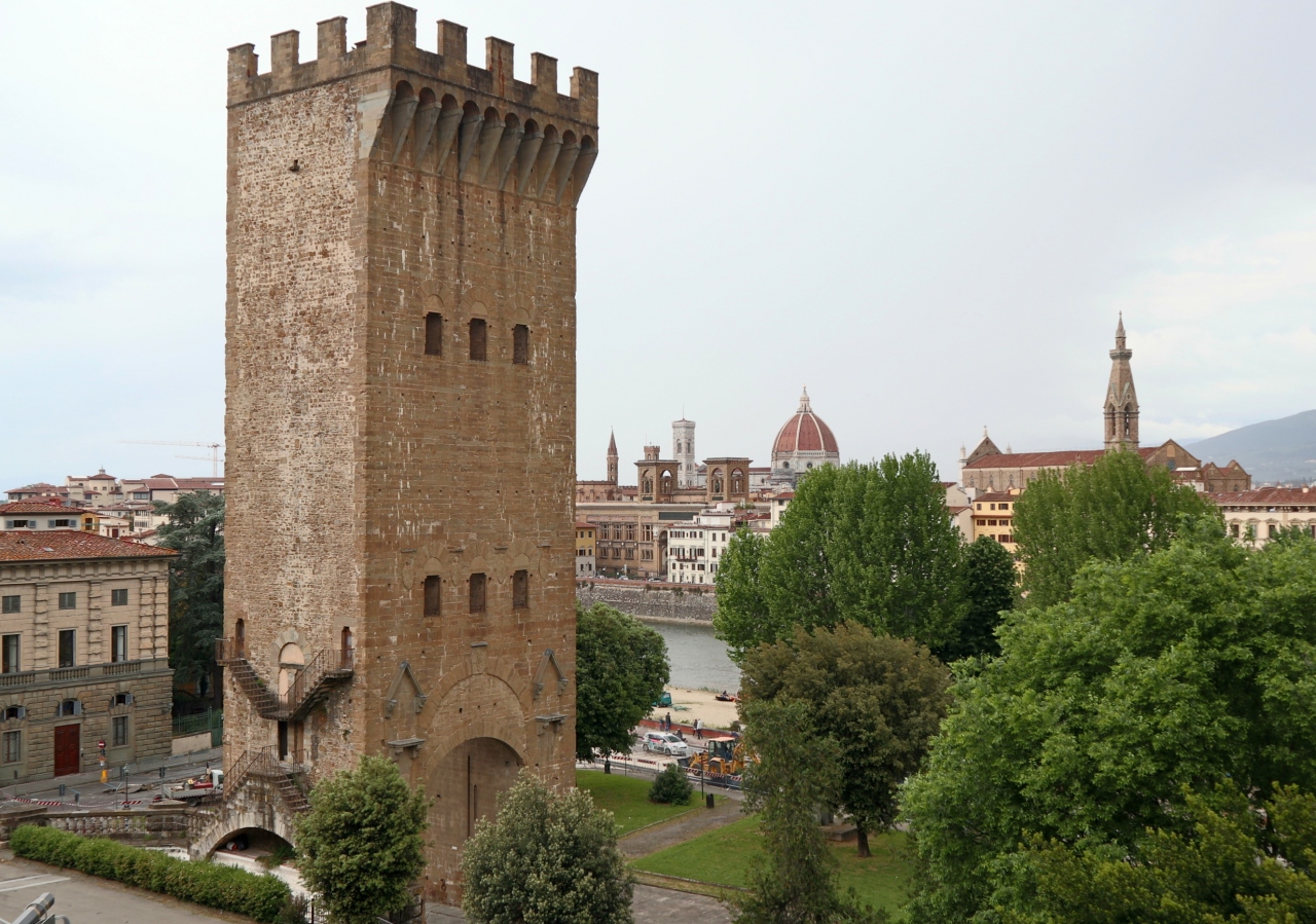 絵画鑑賞の休憩に,3階のテラスに出てみるのもいいですよ。ヴェッキオ宮殿が間近に仰ぎ見ることができます。- 旅行時期