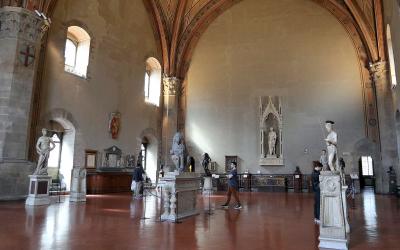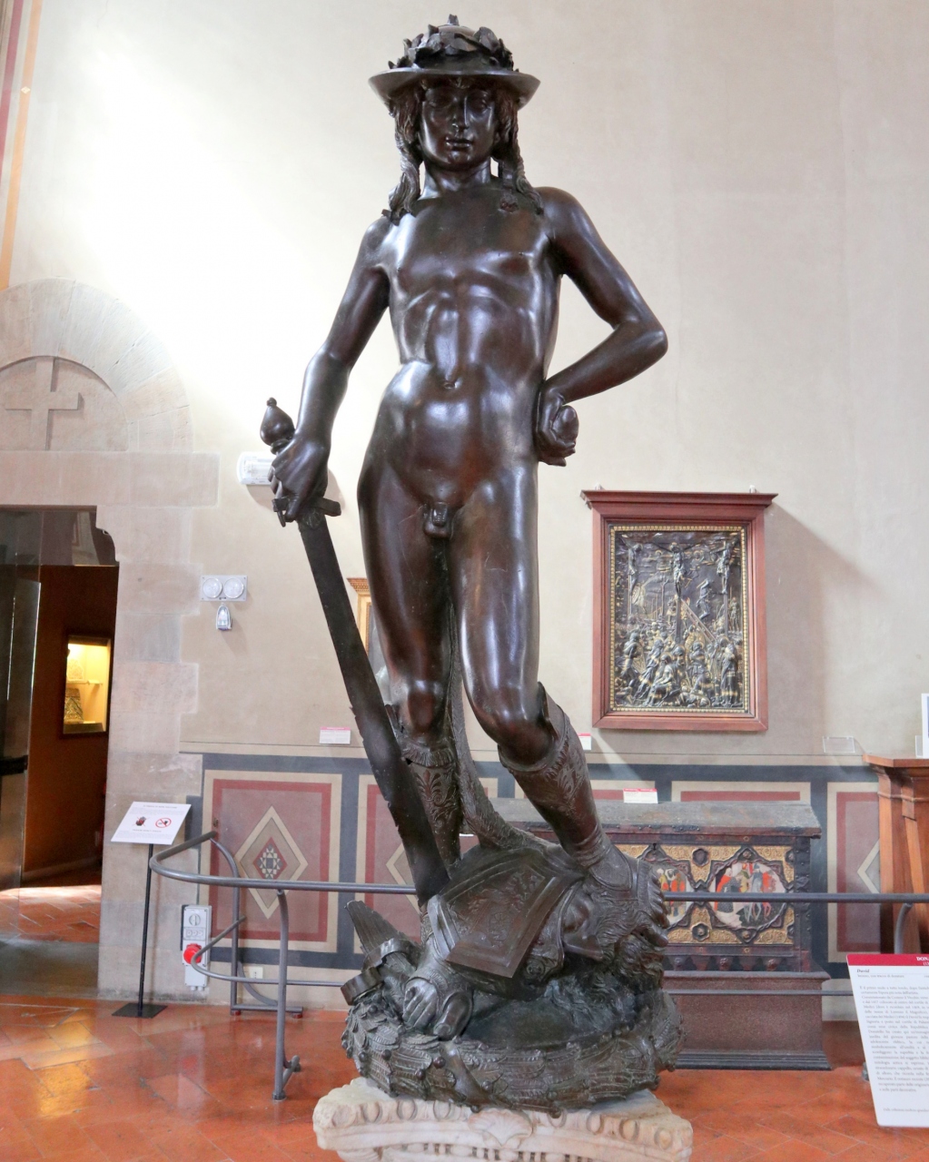 フィレンツェカードを利用して入館。建物は,13世紀半ばに建てられたもので,ポデスタ(行政長官)やバルジェッロ(司法長官)の館として利用されました。現在は,ルネサンス彫刻を集めた博物館になっており,ドナテッロによる二つのダヴィデ像や,シニョリーア広場のマルゾッコのオリジナルなどを見ることができます。1階にはミケランジェロの作品を集めた部屋もあります。