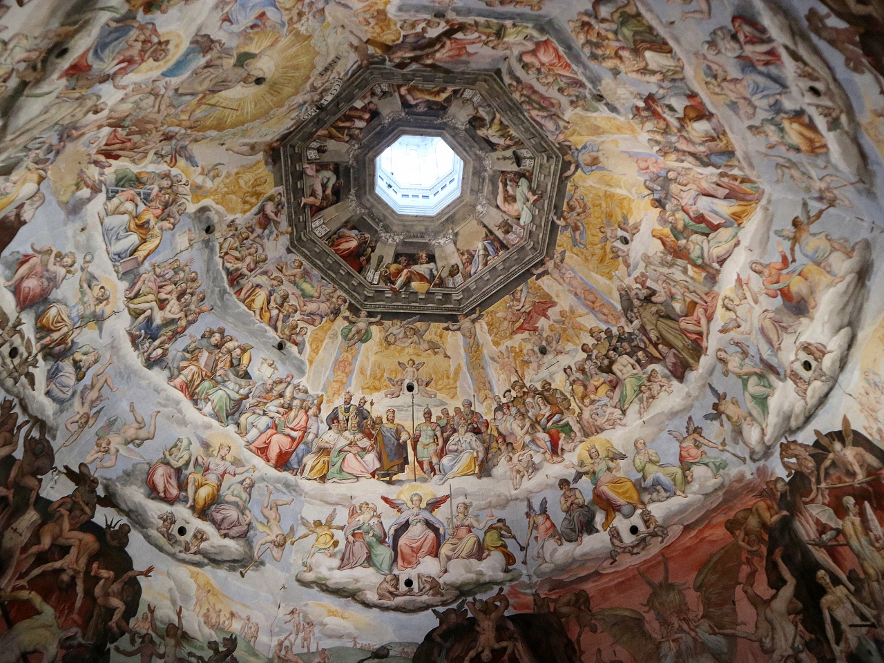フィレンツェ観光では外せないポイント。今回は,クーポラに登りました。入場には,8時30分から18時30分まで(日曜日は13時から15時30分)の間で30分刻みの時間予約が必要(各125人まで)。オンラインでクーポラの入場だけを時間予約することはできず,ドゥオーモの共通チケット(18ユーロ)のオンライ予約と同時に時間予約するしかありません。