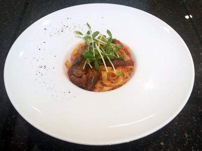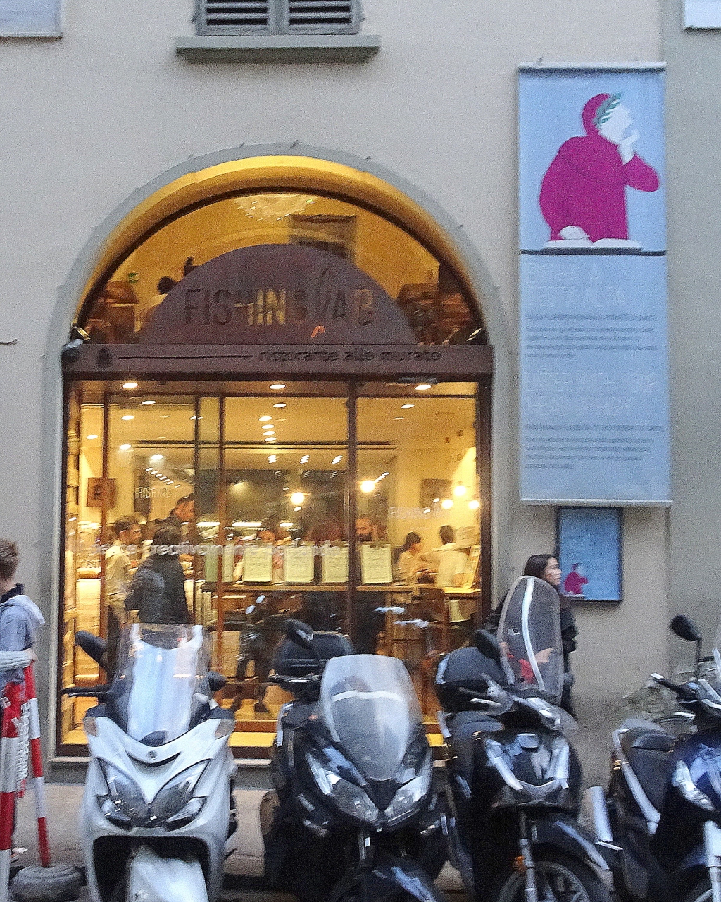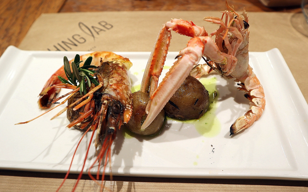 プロコンソロ通りにある魚介料理のお店。情報誌まっぷるで紹介されていたので,ディナーに訪店しましたが,よく繁盛していました。魚介の素材と料理法を組み合わせたメニューのようで,出来上がりがイメージしにくかったのですが,とりあえずスカンピと大海老のグリルとワインを注文。袋入りのパンが付いてきます。なかなか美味で,ワインとよくマッチ。隣りの女の子がまっぷる紹介のマグロのバーガーを食べていました。
