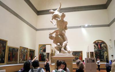 ミケランジェロの彫刻以外に,古楽器のセクション,バルトリーニやパンパローニといった19世紀の芸術家が作った石膏像が展示されているジプソテーカなども見学しましたが,主な作品に限定して回れば30分程度で十分- 旅行時期