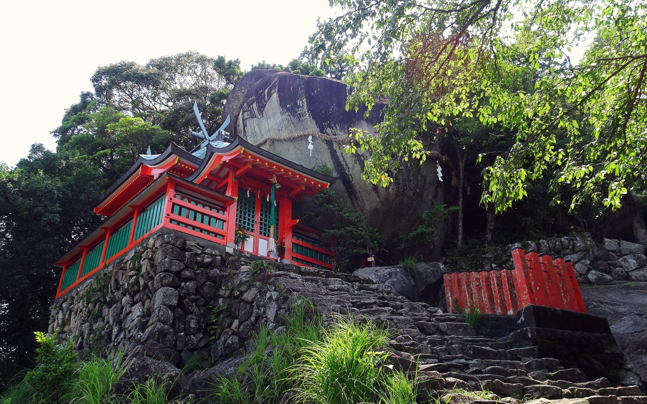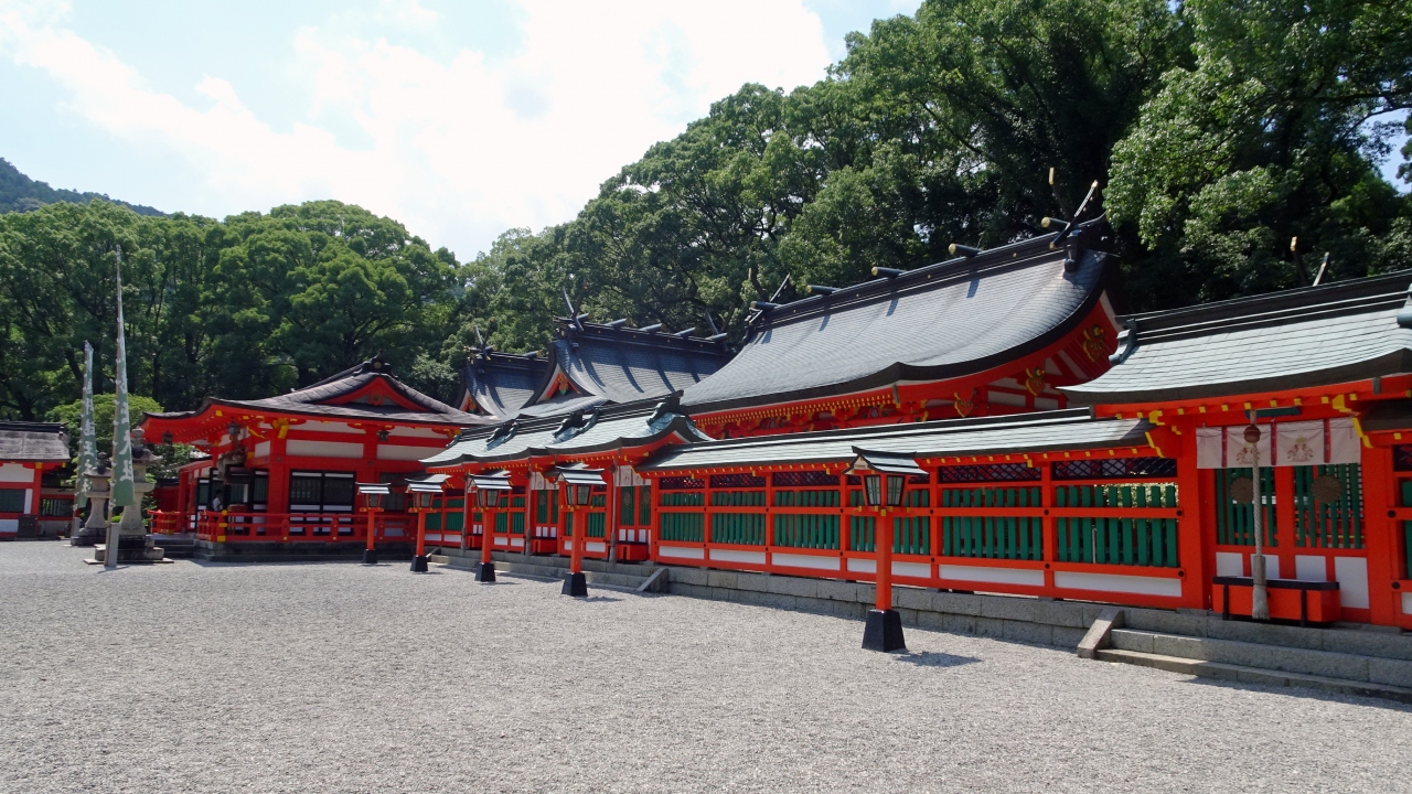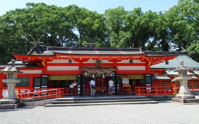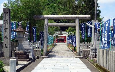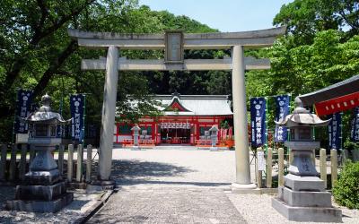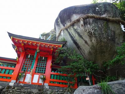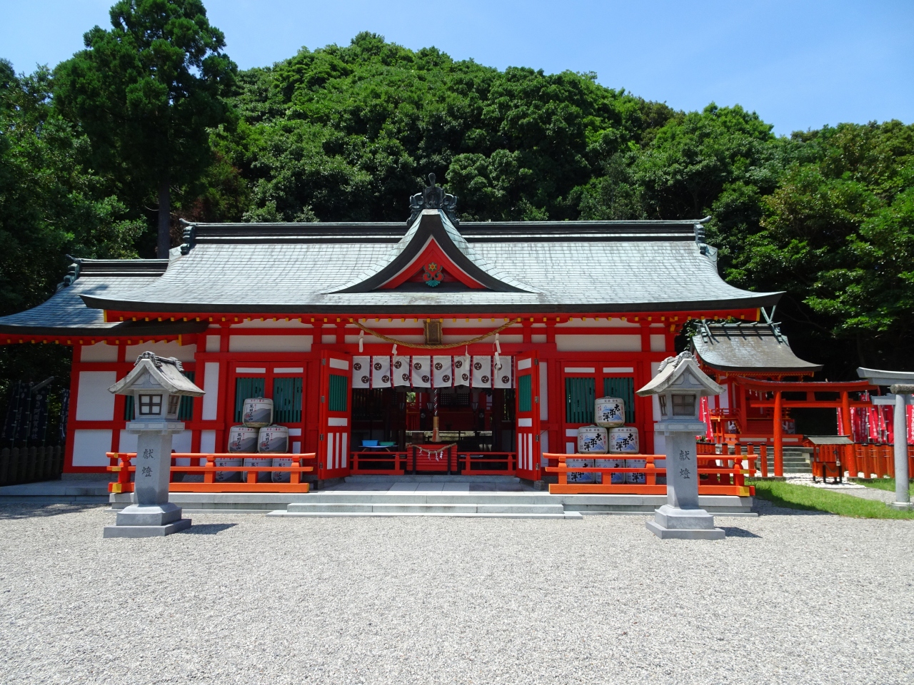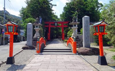 熊野川の河口近く,御神体の蓬莱山を背負って,広い境内に朱塗りの社殿が鎮座。熊野曼荼羅三十三ヶ所23番霊場。神倉山に降臨した熊野の神々が阿須賀の森に遷ったという伝説が残っており,古くから熊野の神々を祀った王子社として,平成28年10月に世界遺産「紀伊山地の霊場と参詣道」に追加登録されています。JR新宮駅から歩いて10分程度。駅の観光協会でもらった散策マップではルートがわかりにくいので,Googleナビを利用しました。