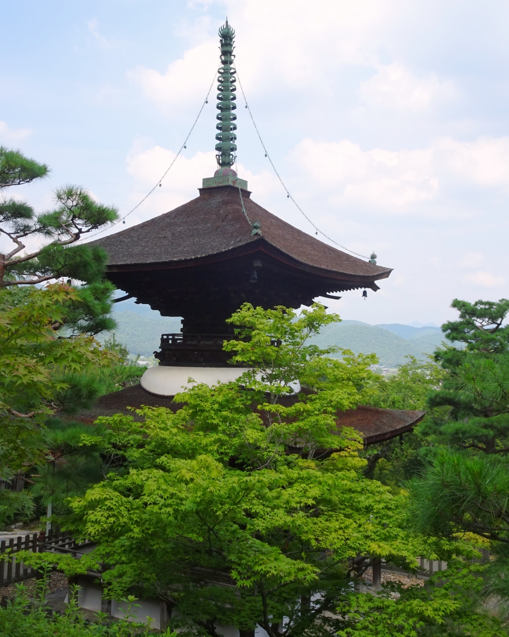 訪れたのは,8月の月曜日。それでも嵐山から竹林の小径まで,結構観光客が多い中,このお寺は人混みはなく,落ち着いた雰囲気でした。紅葉の名所ですが,緑のもみじも趣があります。特にもみじに覆われた仁王門前や仁王門をくぐってからの苔生した庭など,風情があります。多宝塔まではかなりの昇りになっており,その上の展望台からは,嵯峨野の街を見渡すことができ,なかなかの絶景です。