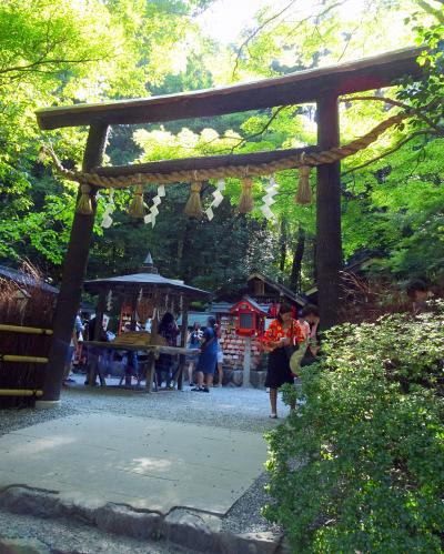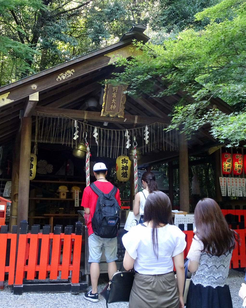 竹林の小径の中ほどにあり,入口には樹皮のついた日本最古の黒木の鳥居が立っています。小さな社に分かれて,複数の神様が祀られており,縁結び・進学祈願のほか,安産や健康など,御利益も一杯。野宮大神のほか,白福稲荷大明神に出産を控えた娘の安産を祈願しました。源氏物語や文芸小説にも登場し,アクセスがいいということもあるかと思いますが,参拝客が多くてビックリしました。