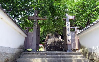 阿須賀神社から熊野速玉大社への途中に立ち寄りました。石段を登って本丸跡に。本丸跡は普通の公園という感じですが,熊野川を一望することができ,その景色はなかなか壮観でした。過去には本丸周辺に旅館があり,ケーブルカーが運行されていた時代もあったとか。