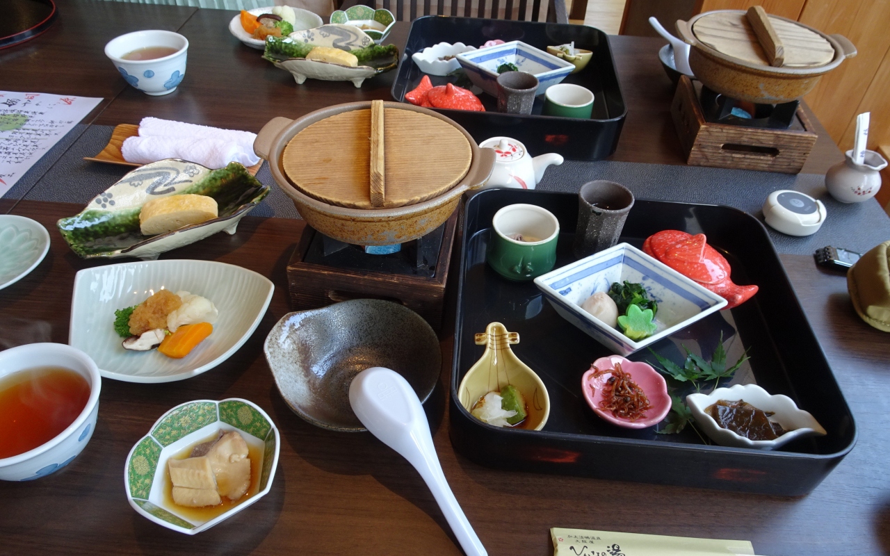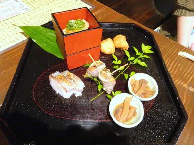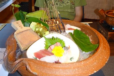 食事は,朝夕とも和風ダイニングで。評判通り大変美味しくいただきました。ランチのみの利用も可能で,加太観光の際,「食祭WAKAYAMA2011」の「和歌山グルメ対決~和歌山の味匠は誰だ」で最優秀賞に選ばれたメニュー「鯛どんぶり」の定食(1,620円)をいただきました。コラーゲンたっぷりの餡がかかっており,わさびと梅肉を合わせていただきます。出汁が多めで,丼というより雑炊のような感じではありましたが,なかなか結構でした。