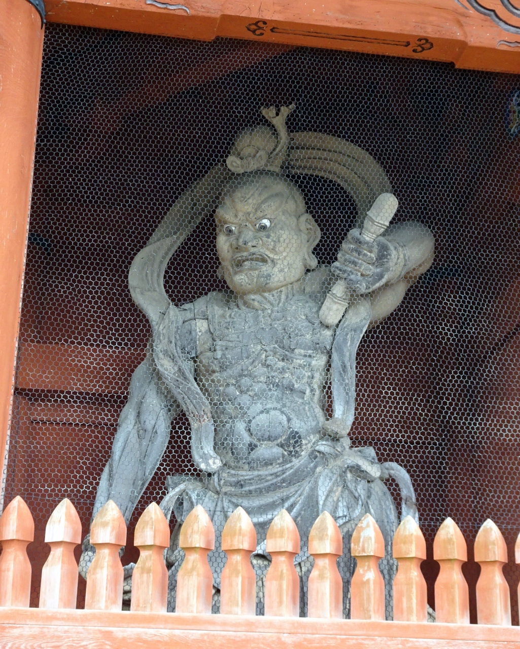 内部は,正面に胎蔵界の大日如来像。金剛界の四仏(左面に室生如来・無量寿如来,右面に阿閦如来・不空成就如来)が周りを囲み,二つの世界が一つに融合する密教の教えを表現。16本の柱には堂本印象画伯の筆による十六大菩薩,四隅の壁には密教を伝えた八祖像が描かれ,堂内そのものが立体の曼荼羅を構成している。金色の仏像と極彩色の柱や仏画に圧倒されます。写真が撮れないのが残念- 旅行時期