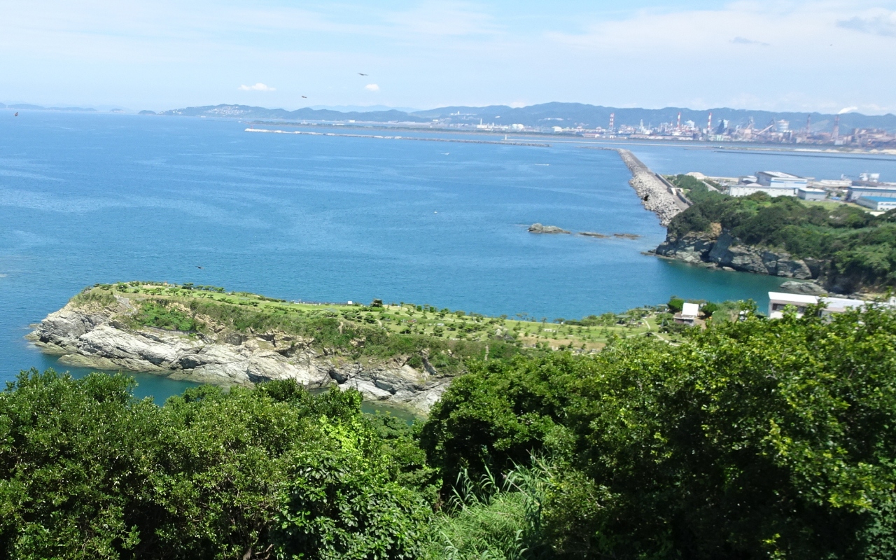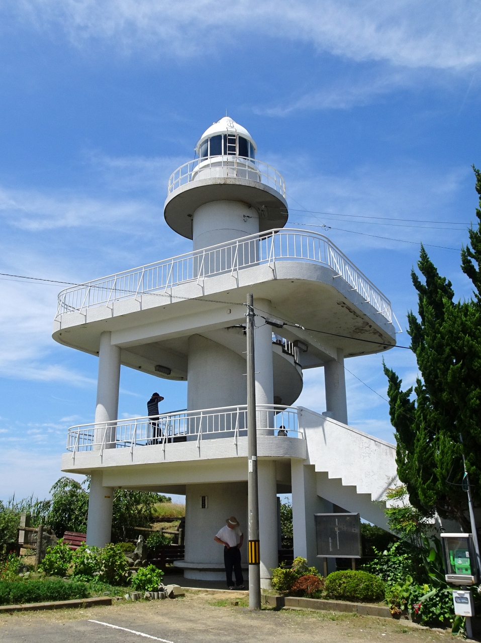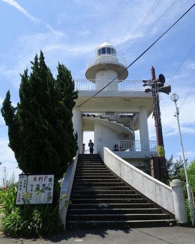 雑賀崎遊園バス停から坂道を登ること徒歩で約15分。鷹の巣と呼ばれる崖の上に建設された観光用展望台の上に設置された灯台で,昭和35年3月に点灯。展望台からは,西側に番所の鼻,大島,中之島,双子島が,東側に浪早崎が見渡せ,最高の眺望です。今回は,お昼に訪れましたが,ここからの夕日は特に素晴らしく,地元では,彼岸の中日の日没時,「ハナフリ」といって沈む太陽から様々な色の光の玉が花びらのように降る様子を見る風習があり,毎年「夕日を見る会」が催されている。