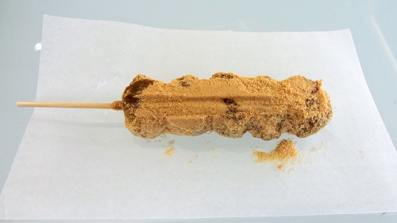 雑賀崎遊園バス停から雑賀崎灯台に向かう坂道の途中にある海鮮干物を直売している小さなお店です。店名のとおり,さんまの開きを中心に取り扱っているお店で,灰干乾燥という製法で仕上げている「灰干さんま」が目玉商品ですが,この日は,土曜日限定で販売されている「おおやさ」という雑賀崎の郷土菓子(黒蜜ときな粉をまぶしたよもぎの串団子。1本60円)を,散策途中のおやつにいただきました。小さなテーブルが置かれているので,店内で座って食べることができます。ちょっと硬めで,素朴な味でした。