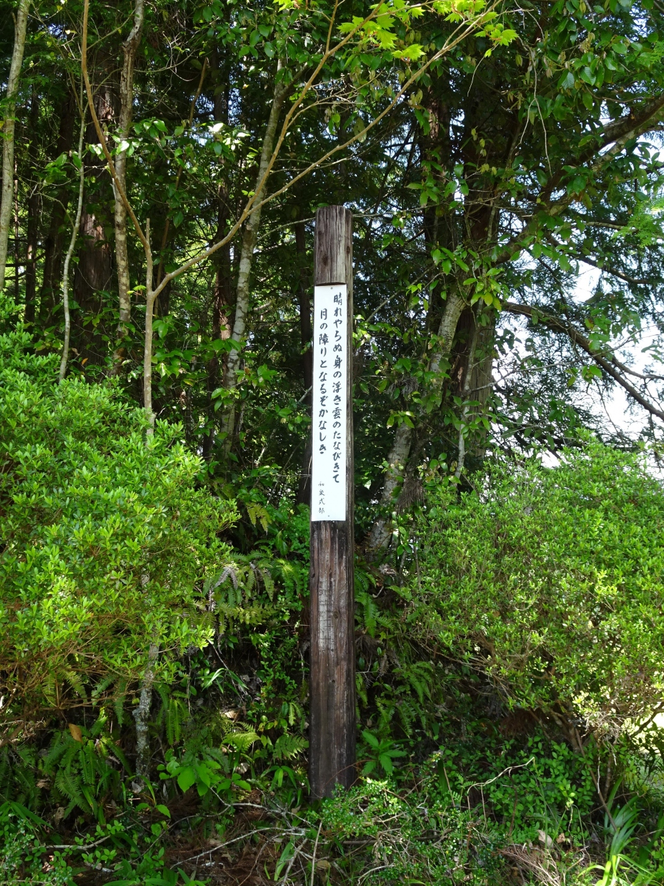 熊野詣の旅人がここから初めて本宮(旧社地)聖地を見ることができた感激で伏し拝んだというのが名の由来。和泉式部の句碑があり,和泉式部が参拝したときの伝説が残る。近くに「伏拝茶屋」という休憩所があり,アイスコーヒーを飲んで,ウォーキング再開