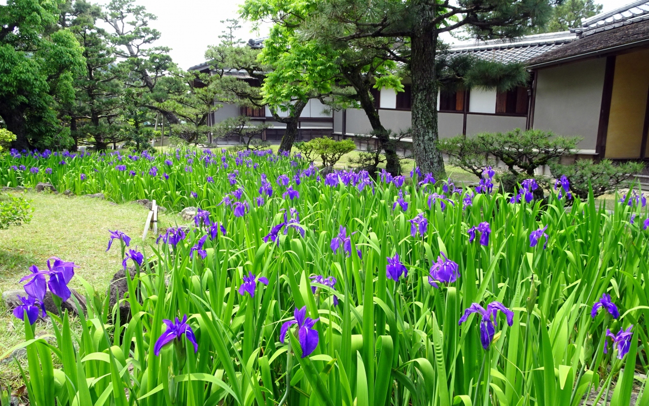 カキツバタが見頃となっていると聞き,見に行ってきました。もっと規模が大きいのかと思って行きましたが,養翠亭という建物の横の一画だけでした。とはいえ,前日の雨にもかかわらず,色鮮やかな紫紺の花が咲き揃い,目を和ませてくれました。