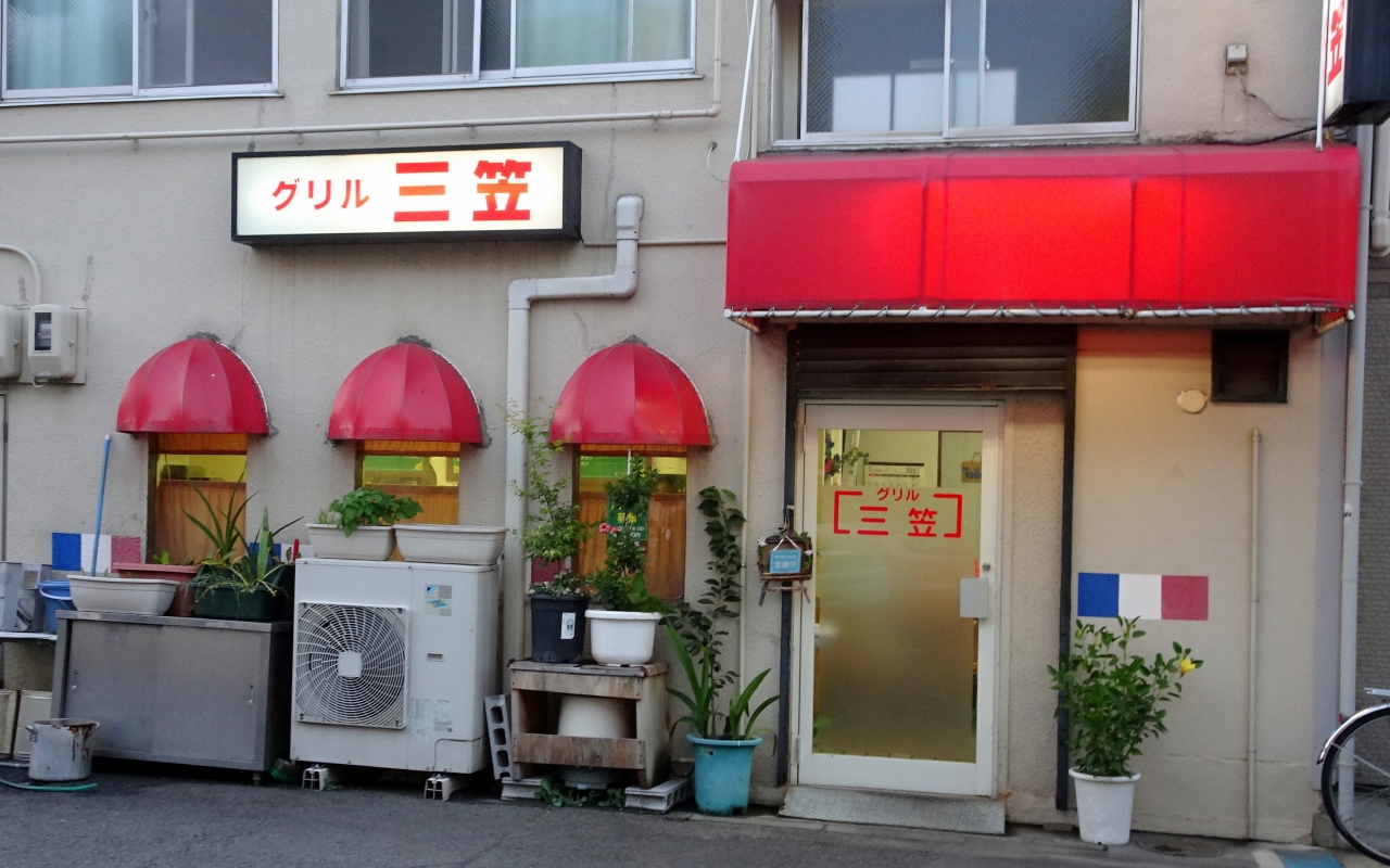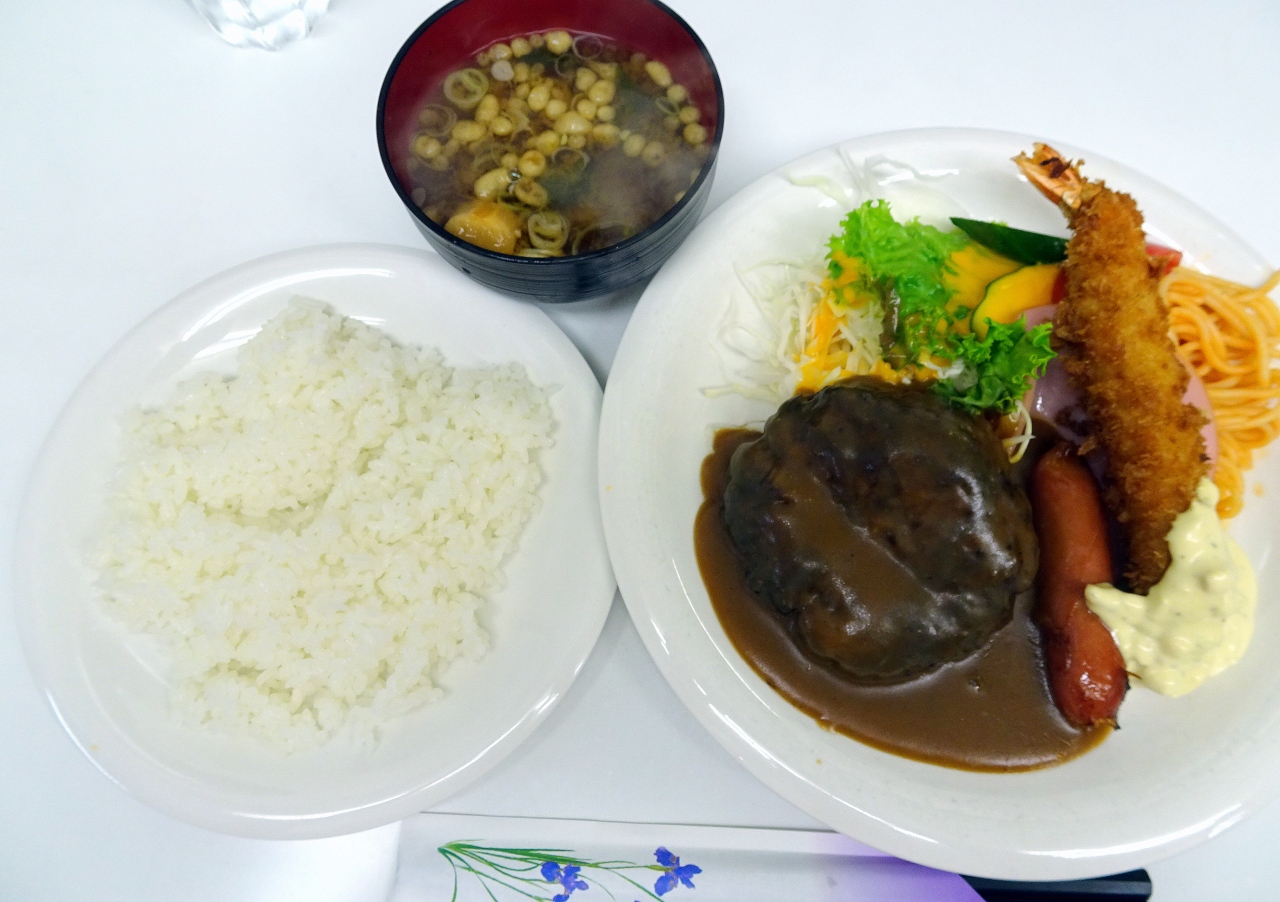 けやき大通りから新通商店街を北に少し行ったところにある,昔ながらの洋食屋さんです。日曜日の夕方訪店しましたが,テーブル席は全部埋まり,よく繁盛していました。ハンバーグとエビフライとウインナーがセットになっている「三笠」(900円)に,ライス(200円)とお味噌汁(100円)をプラスしていただきました。ハンバーグは,ふわっと柔らかく,オリジナルのデミグラスソースがよくマッチし,大きめのエビフライは,衣がサクサク。美味しくいただきました。