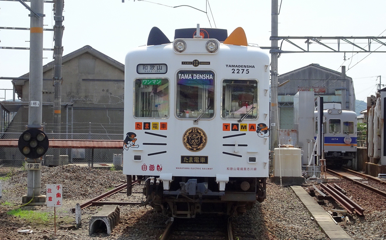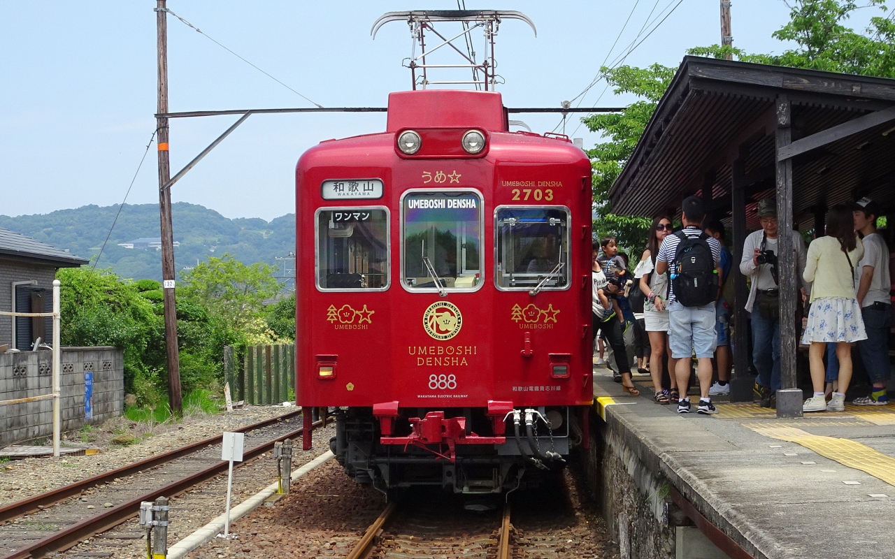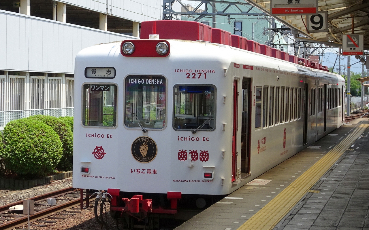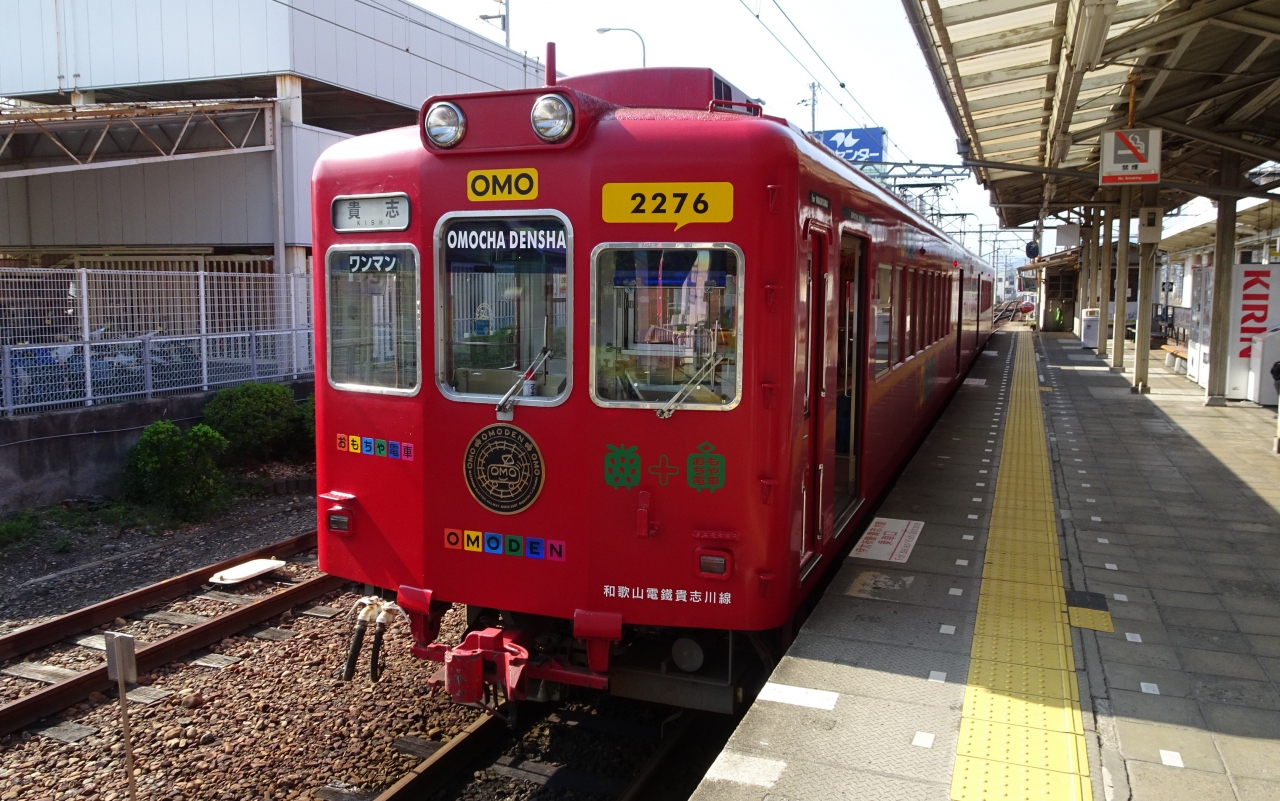 貴志川線は,2016年に開通100周年,和歌山電鐵に営業が移って10周年。水戸岡鋭治デザインの電車が話題になっています。「いちご電車」,「おもちゃ電車」,「たま電車」に,6月4日「うめ星電車」が加わりました。木の質感を取り入れ,窓は神社幕や御簾のイメージ。この日は,沿線の西国三社を巡り,終点のたまミュージアム貴志駅などを訪ねました。780円の1日乗車券が非常に便利で,何度も乗下車して沿線を散策する場合はもちろん,和歌山駅から貴志駅までを往復する場合もこの乗車券がお得。色んな車両に乗りたい方は,和歌山電鐵のWebサイトの「時刻表」に車両別の時刻表が掲載されています(1日乗車券を購入すると,観光ガイドとともに配布もしてもらえる)。