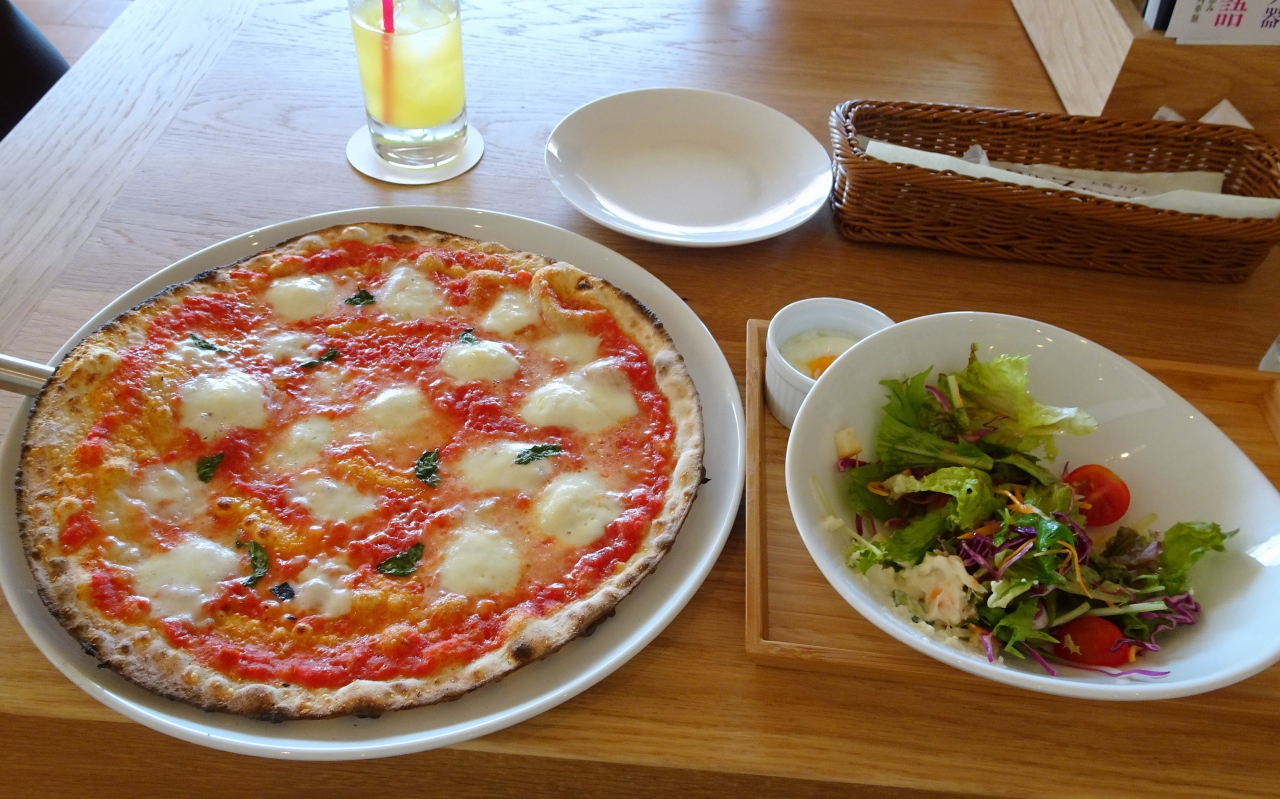 和歌山電鐵貴志川線の大池遊園駅から徒歩3分。2016年6月17日にオープンしたピッツァ&パスタのカフェ。ランチに利用しましたが,店内は明るく,広め。大池に面してテラス席もあり,大池に架かる鉄橋を通る電車も眺められます。ランチタイムは,ピッツァかパスタのセットのみらしく,14時以降ならサンドイッチも。ピッツァ&パスタは1500円から。マルゲリータをチョイスしてAセット(+500円)を注文。直径40cmはあるビックサイズのピッツァでしたが,クリスピータイプで,一人でもペロリでした。自分でトッピングを選べるカスタマイズピッツァというのもあるようです。サラダも,温玉が付いていて,美味。