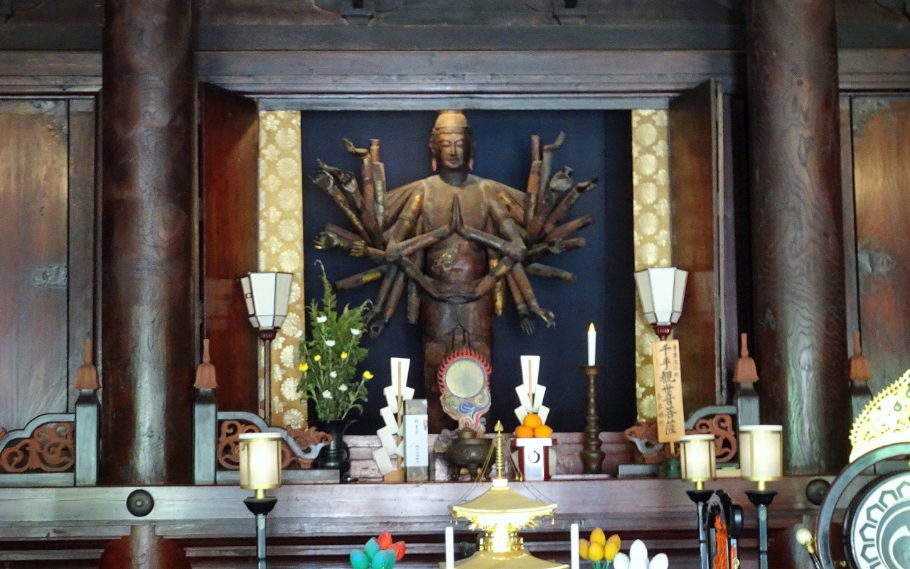 安珍清姫の物語で有名な道成寺は,大宝元年(701年)に,文武天皇が夫人の宮子(聖武天皇の母)の願いにより創建したという紀州最古の寺。境内に七不思議が隠されている面白いお寺。現在の本堂は,1357年に建て替えられた2代目で,日本で最も又は2番目に古い千手観音菩薩像(重要文化財)が祀られているが,北側には,33年に一度,春に33日間だけ公開されるという秘仏の千手観音が一体祀られているそうだ(七不思議の一つ)。次の御開帳は,2038年