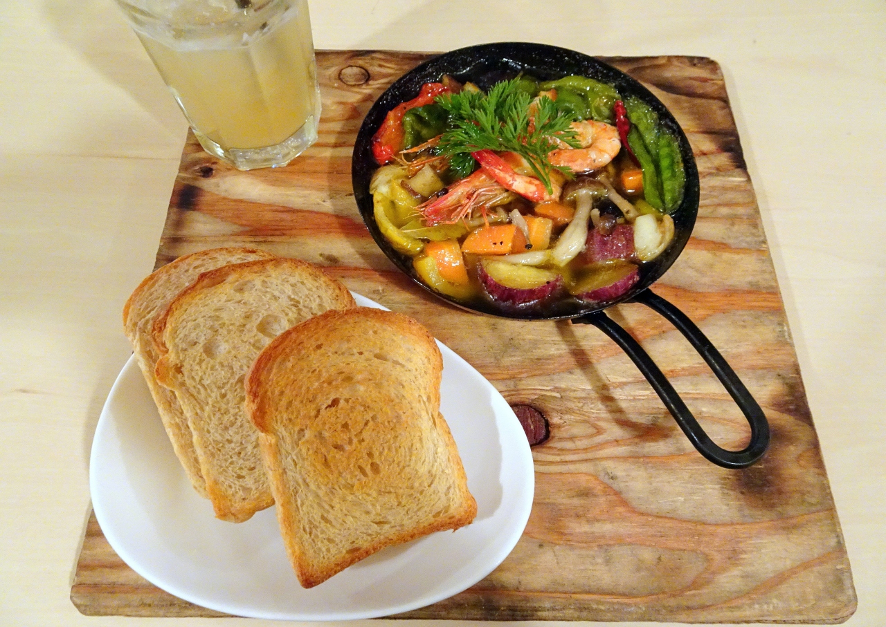 なお,晩には,えびと野菜のアヒージョや石窯焼きのソーセージ,ピザなどをつまみにビールなども飲めます。ソーセージは,パリっとした歯ごたえがないのがちょっと残念。ピザは,クリスピータイプで,トマトソースがいい感じです。- 旅行時期