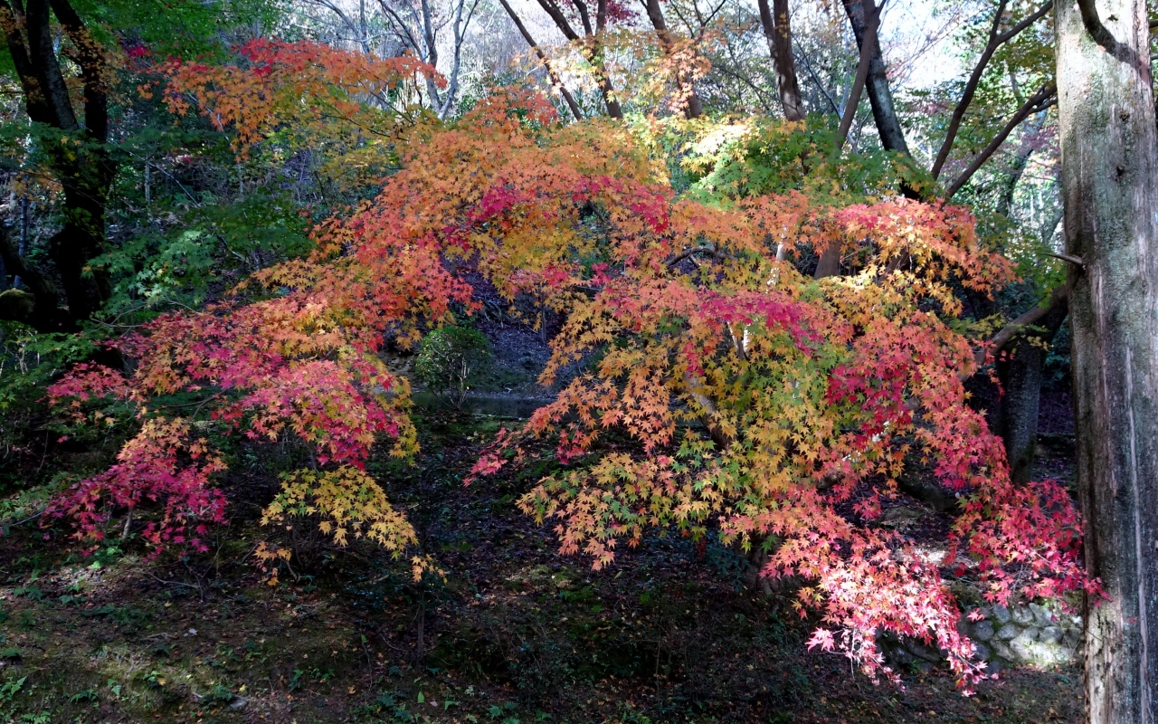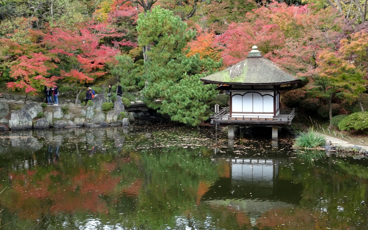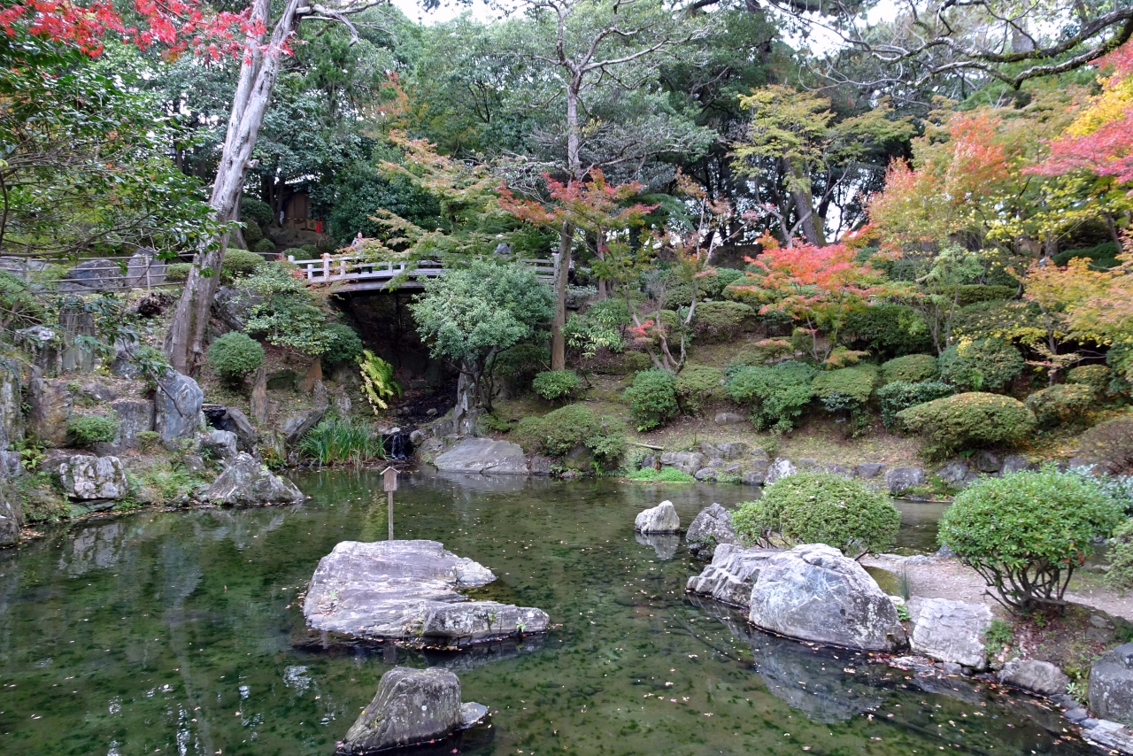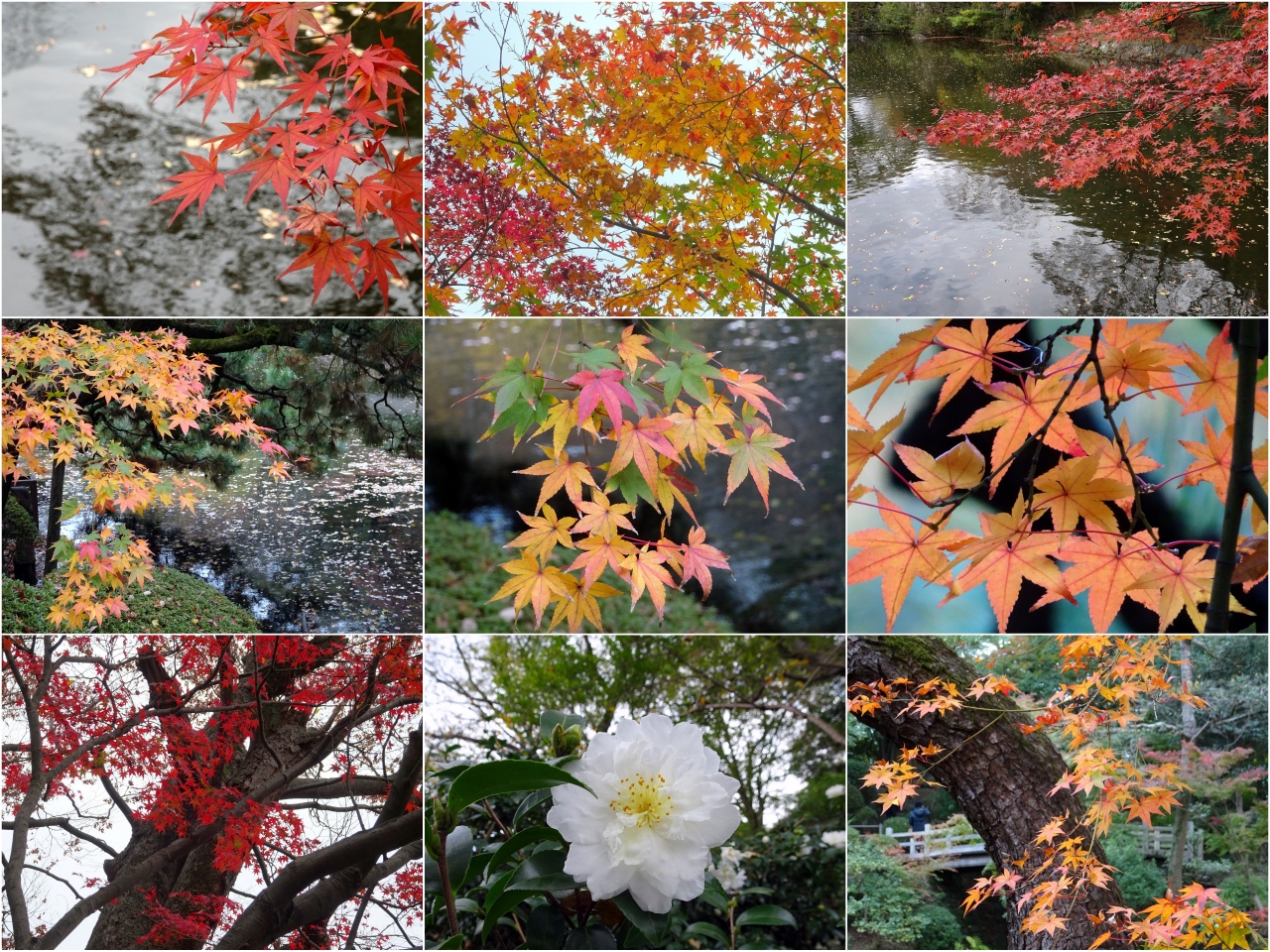 和歌山城の西之丸庭園は,通称「紅葉渓庭園」と呼ばれ,和歌山市内の紅葉の名所となっています。紀州藩初代藩主徳川頼宣が隠居所の御殿と共に築いた池泉回遊式庭園。虎伏山の斜面を利用して沢や池を作り,御橋廊下で区切られた内堀を大きな池に見立て,釣殿風の建物「鳶魚閣」や「柳島」を配置した,趣のある庭園です。紅葉に囲まれた「上の池」や内堀とそこに浮かぶ「鳶魚閣」の姿を,様々な角度から写真におさめることができました。