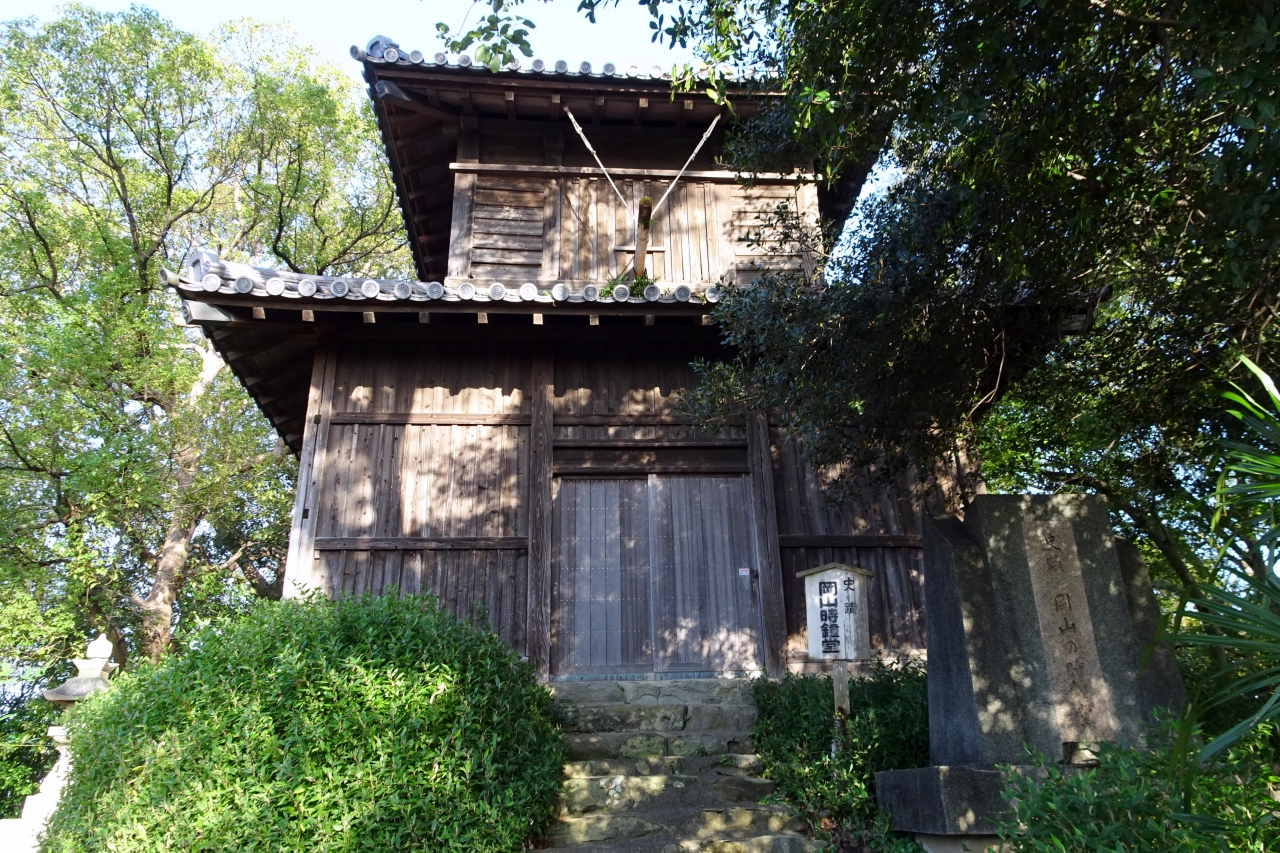 和歌山城の南側にある丘の上,奥山稲荷神社の境内にあります。紀州藩5代藩主であった吉宗の命により正徳2年(1712年)に設置された,高さ約8m,約6m四方の2階建ての鐘楼。吊り下げられている梵鐘は,大坂夏の陣で豊臣方が使用した青銅製の大筒が改鋳されたもの。藩士の登城時刻や刻限のほか,火事,洪水,異国船の出没などの非常事態を知らせていた。大正10年(1921年)の時報廃止により役目を終えていましたが,1948年から現和歌山ユネスコ協会により8月15日に「平和の鐘」打鐘会が開始され,また,1999年からは大晦日の除夜の鐘つきも行われているとか。どんな音色なのかな。