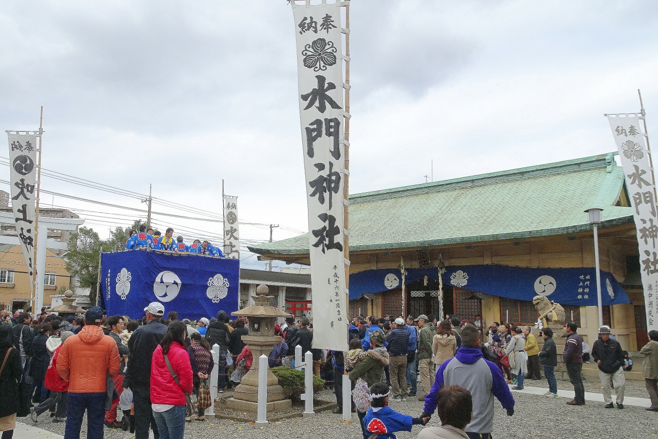 水門神社はえびす様,吹上神社は大国様と,二柱の福の神を祀る珍しい神社。毎年11月23日には,新嘗祭が催され,「牛の舌餅」という畳1枚程あるのし餅が奉納され,フィナーレには,和歌山名物の餅まき(餅投げ)が行われます。近所からたくさん見物の人が集まって,餅がまかれる度にキャッチしたり,拾って袋に入れる人が群がって,活気のあるお祭りでした。