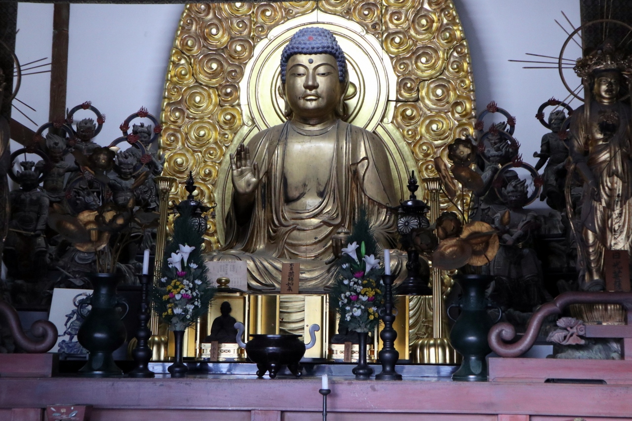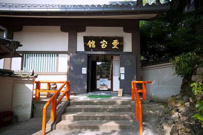 日本史の教科書にも出ていた,4大国宝絵巻の一つ『信貴山縁起絵巻』の複製があります。原本は,奈良国立博物館に寄託されており,特別に展示される機会でなければ見られないらしいので,普段見ることができるのはここの複製だけ。一室だけで,えっと思うくらい小さい館内。やや薄暗くて,中央の絵巻の展示も,その価値を感じさせない装いですが,鉢に乗せて米倉や米俵を飛ばす「山崎長者の巻(飛倉の巻)」の奇想天外な物語や,「延喜加持の巻」の剣鎧童子が天空を駆け巡る躍動感のある描写,「尼公の巻」の東大寺大仏に尼公が拝む場面の,異なる時間を同じ場面に描いて表現する異時同図法など,興味深く拝見しました。主要場面の展示なので,「尼公の巻」における尼公が命蓮上人に再会する場面はありませんでした。なので,受付で絵葉書を買いました。