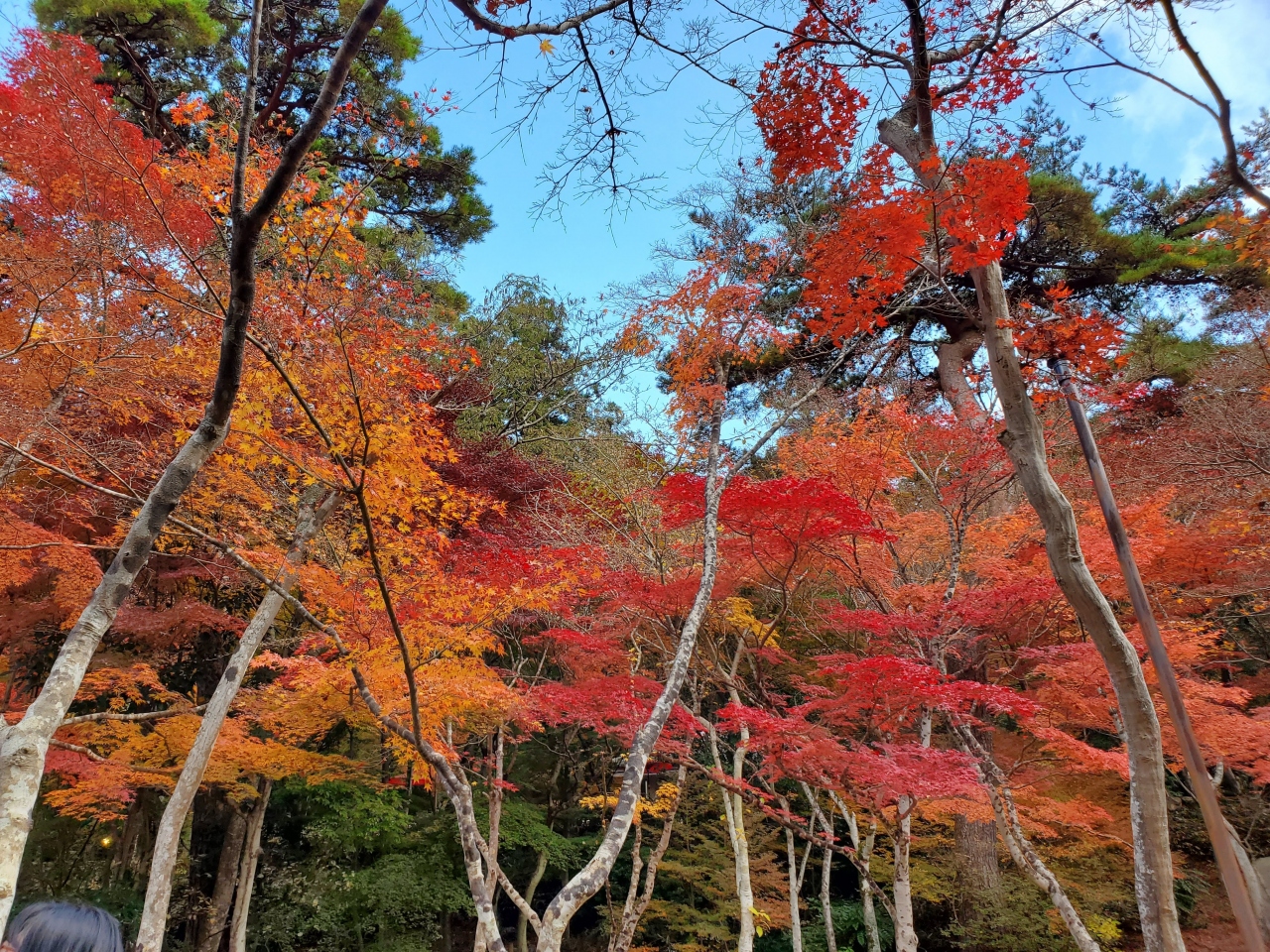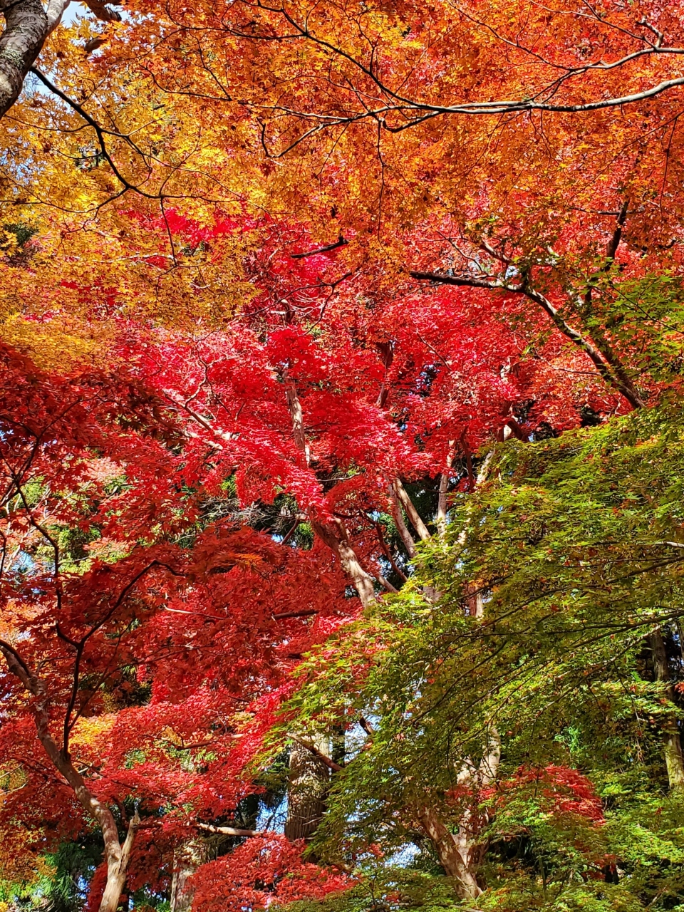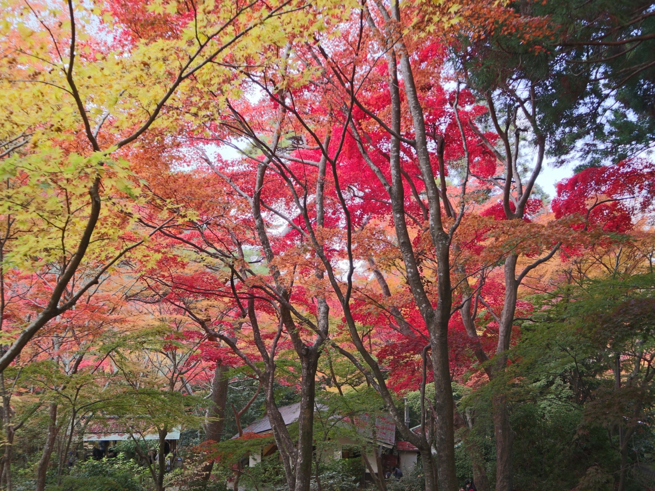 11月中旬に休みが取れたので,紅葉でも見に行こうと,紅葉名所紹介サイトで近場のスポットを検索したところ,ここが今見頃だと。三宮から地下鉄と神鉄で行けるのが便利で,有馬温泉街もついでにぶらぶらできる。有馬温泉駅からは坂を昇って約15分。明治6年に廃寺となり,伏見桃山城から移築したという山門だけが残る,瑞宝寺跡の公園で,太閤秀吉が紅葉を賞でている間に思わず終日を過ごしてしまったことから,「日暮しの庭」の雅名で知られる紅葉の名所。訪問時は,まさに見頃をとなった紅葉は,赤色だけではなく,緑や黄色と共に,時折差し込むに光に錦色に輝き,得も言われぬ美しさ。平日ながらそこそこの人出で,密に集まり酒盛りをするシニアの集団には興醒めでしたが,美しく色付いた紅葉を観ることができ,コロナ禍の中,良い気晴らしになりました。