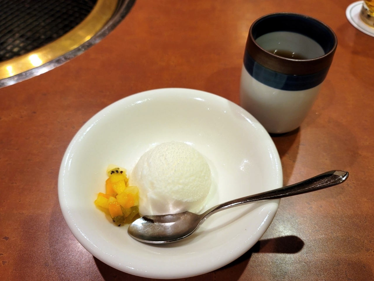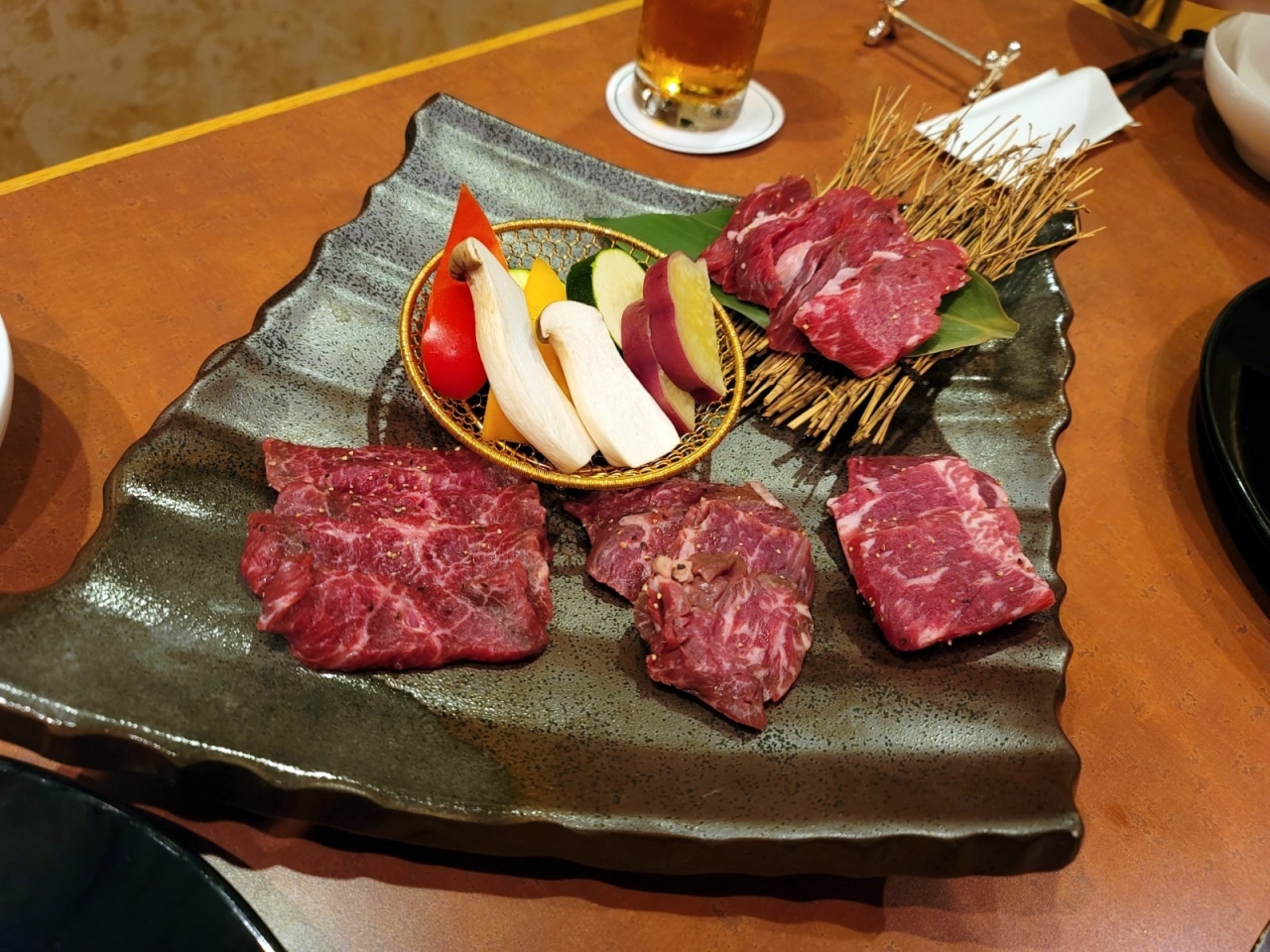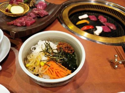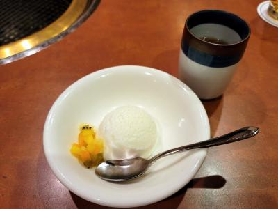 グランキューブ大阪(大阪国際会議場)で,2回目の新型コロナワクチン接種時,前回に続いて,隣のリーガロイヤルホテルでランチ。今回は,地下1階にある「焼肉なにわ」で。まず,3種類から選べるお肉の前菜,キムチとナムルの盛り合わせ。サラダは,白味噌ドレッシングが美味。メインの焼肉は,ロースなど4種を二切れずつに,焼野菜がセット。ご飯はおかわり自由で,牛筋わかめスープ付き。600円プラスすると,ビビンバ又は冷麺に変更も可。デザートは,抹茶アイス又はヨーグルトシャーベット,柚子シャーベットからチョイス。焼肉は,生肉用,野菜用,取分け用に別々のトングが用意されており,甘めの特製タレ,塩,レモンに付けていただく。ヒレミミやサガリなど珍しい部位もあり,ゆっくりマイペースで焼くことができ,美味しくいただきました。